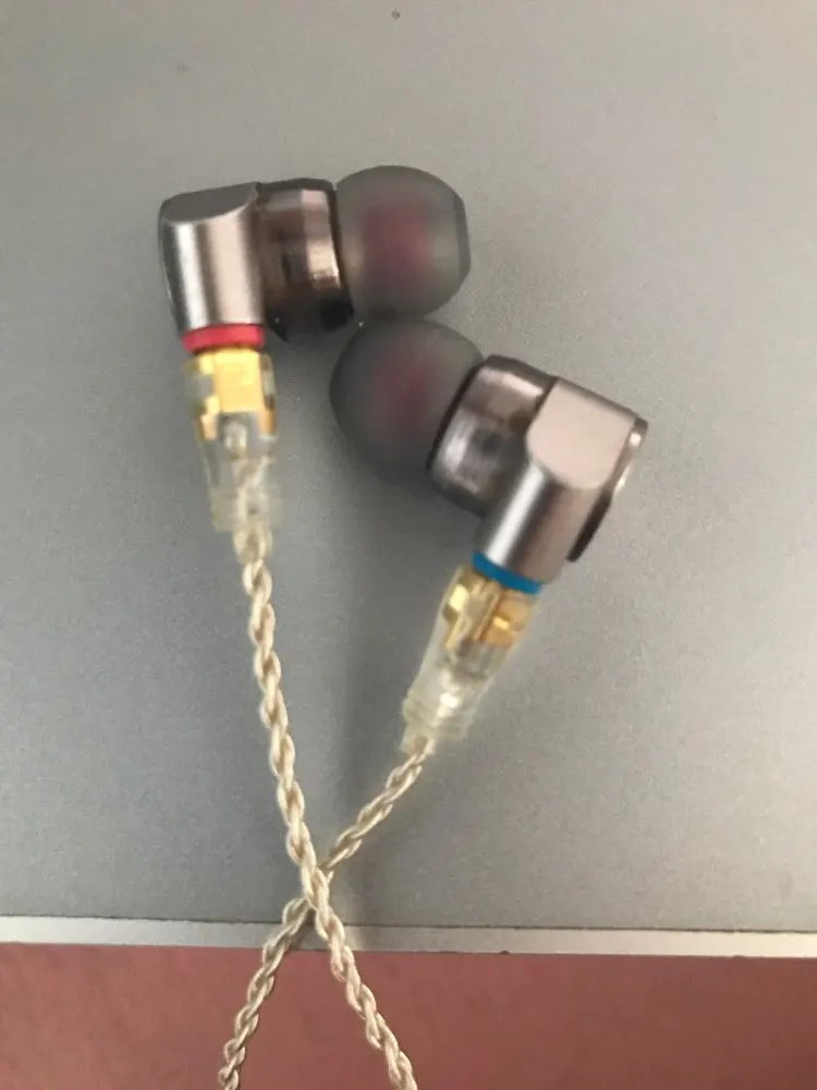 Я думаю, что они очень хорошие аудиотелефоны по стоимости, у них отличная конструкция, порт MMCX, и я прикоснитесь к нему, поставляется с 8-проводным посеребренным кабелем, довольно хорошо, звук приличный, но у него острый гнев, который мне кажется немного раздражающим, и они немного удобные, Даже если они не выглядят хорошо, они выпадают из уха или двигаются. Я рекомендую их тем, кто любит десны и их диеньо,