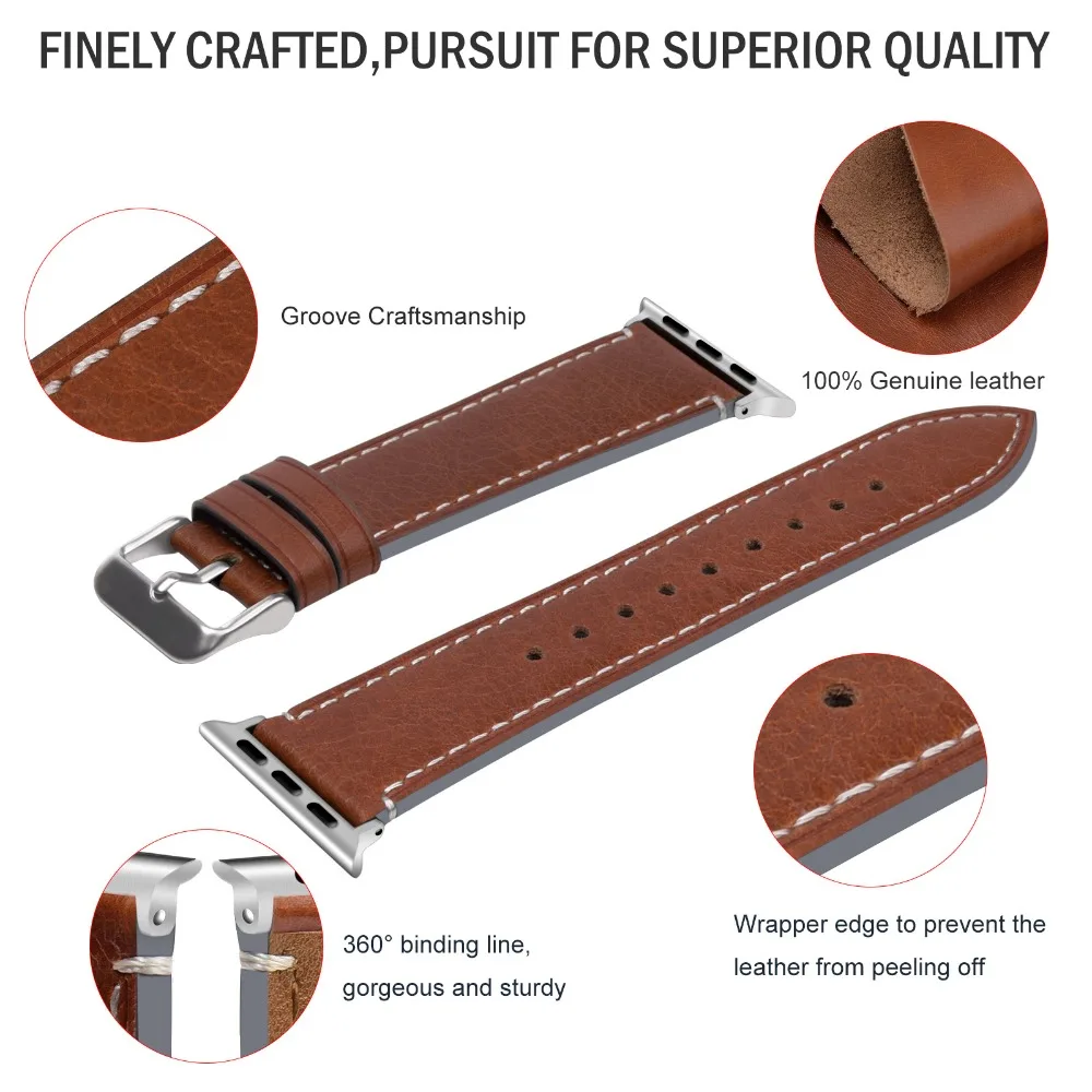 ❤Модный дизайн: Ремешок Fullmosa iWatch с модным кожаным стилем, изысканная работа, выполненная с квадратной пряжкой из нержавеющей стали и классической аккуратной строчкой, сделает ваши часы apple элегантными и оригинальными.