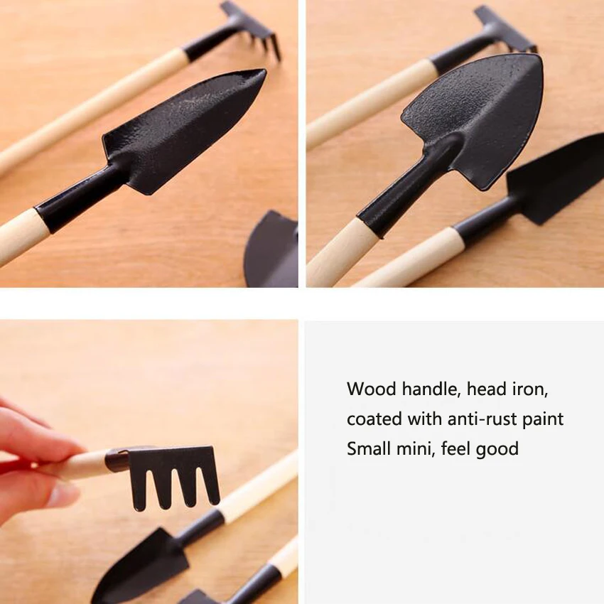 Горячая Распродажа 3 шт.компл. мини набор ручных инструментов для сада лопата, грабли с деревянной ручкой, металлическая головка для сада