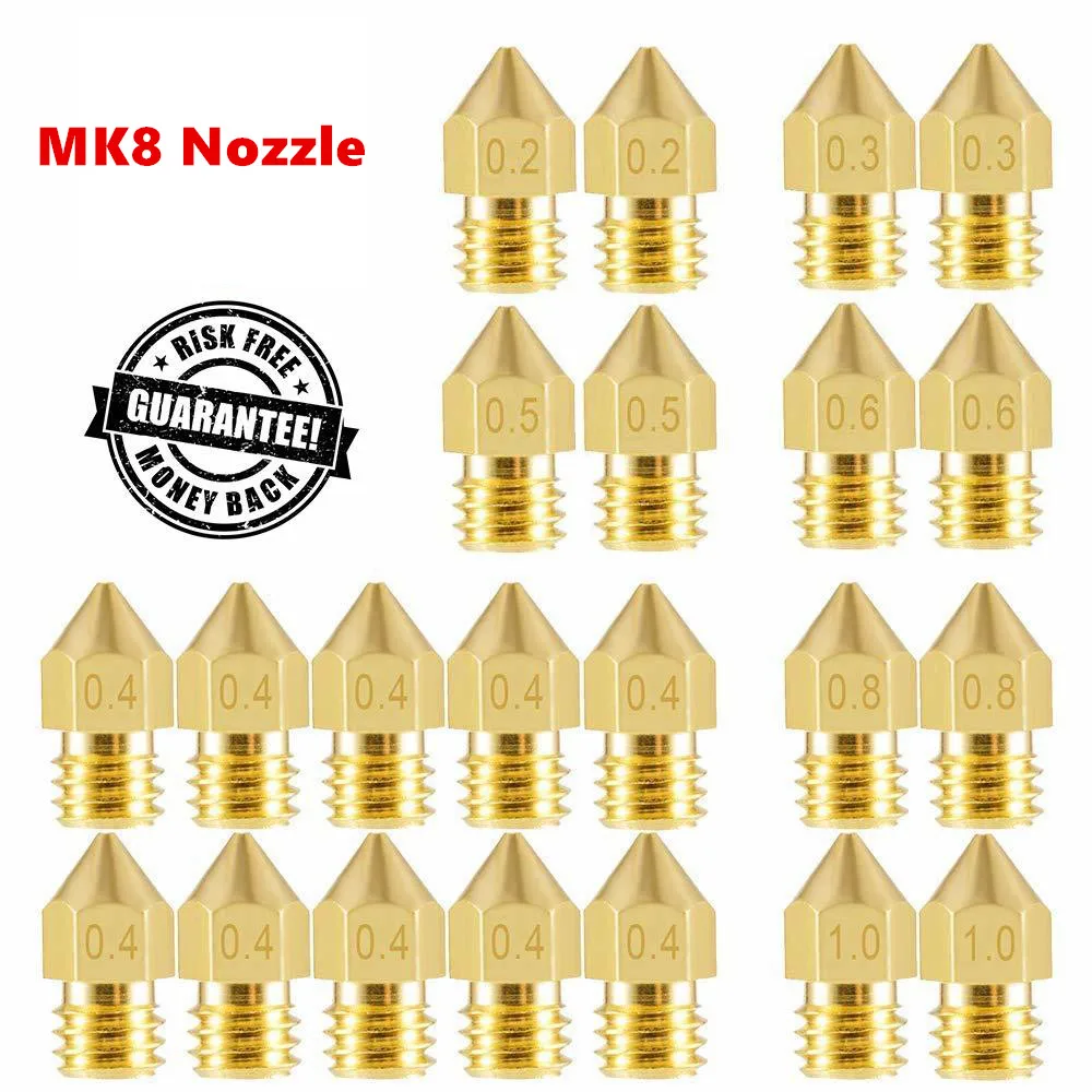 MK8 Экструдер Насадка 0,2 мм 0,3 мм 0,4 мм 0,5 мм 0,6 мм 0,8 мм 1,0 мм латунь экструдер печатающей головки для 3D-принтеры Anet A8