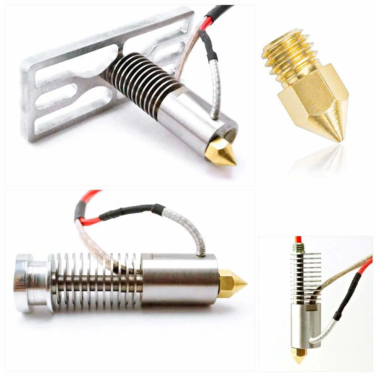 Параметры: Материал: цинковый сплав Выходная нить: M6 Нити Диаметр: 1,75 мм Выход Диаметр: 0,2 мм, 0,3 мм, 0,4 мм, 0,5 мм, 0,6 мм, 0,8 мм, 1,0 мм Совместимость: Creality CR-10, MK8 Makerbot Reprap Prusa I3, Tevo Tarantula, Anet A8, 3D-принтер Ender 3 и др.