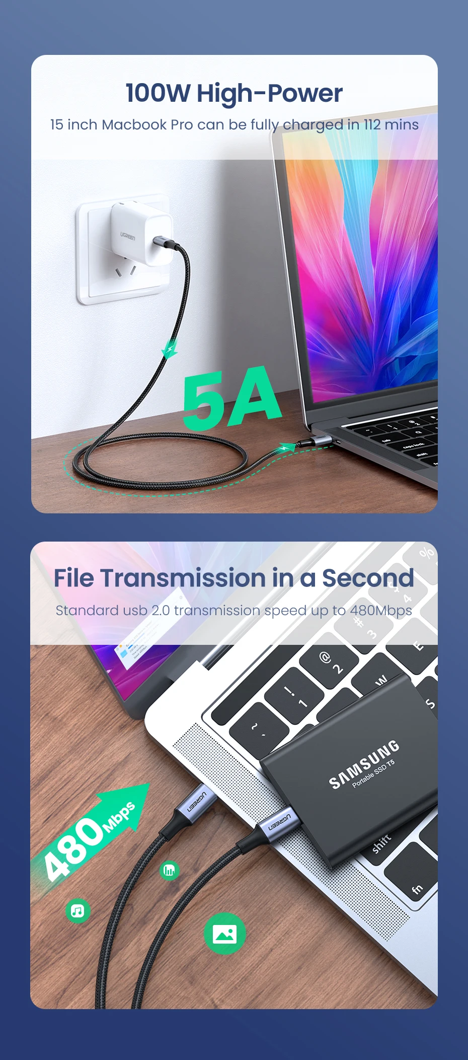 Отличный кабель высокого качества. Так как у меня нет зарядного устройства USB Type-C 100 Вт, я не могу проверить максимальную мощность, указанную в рекламе. У меня не было проблем с использованием его с зарядным устройством 60 Вт и ноутбуком.