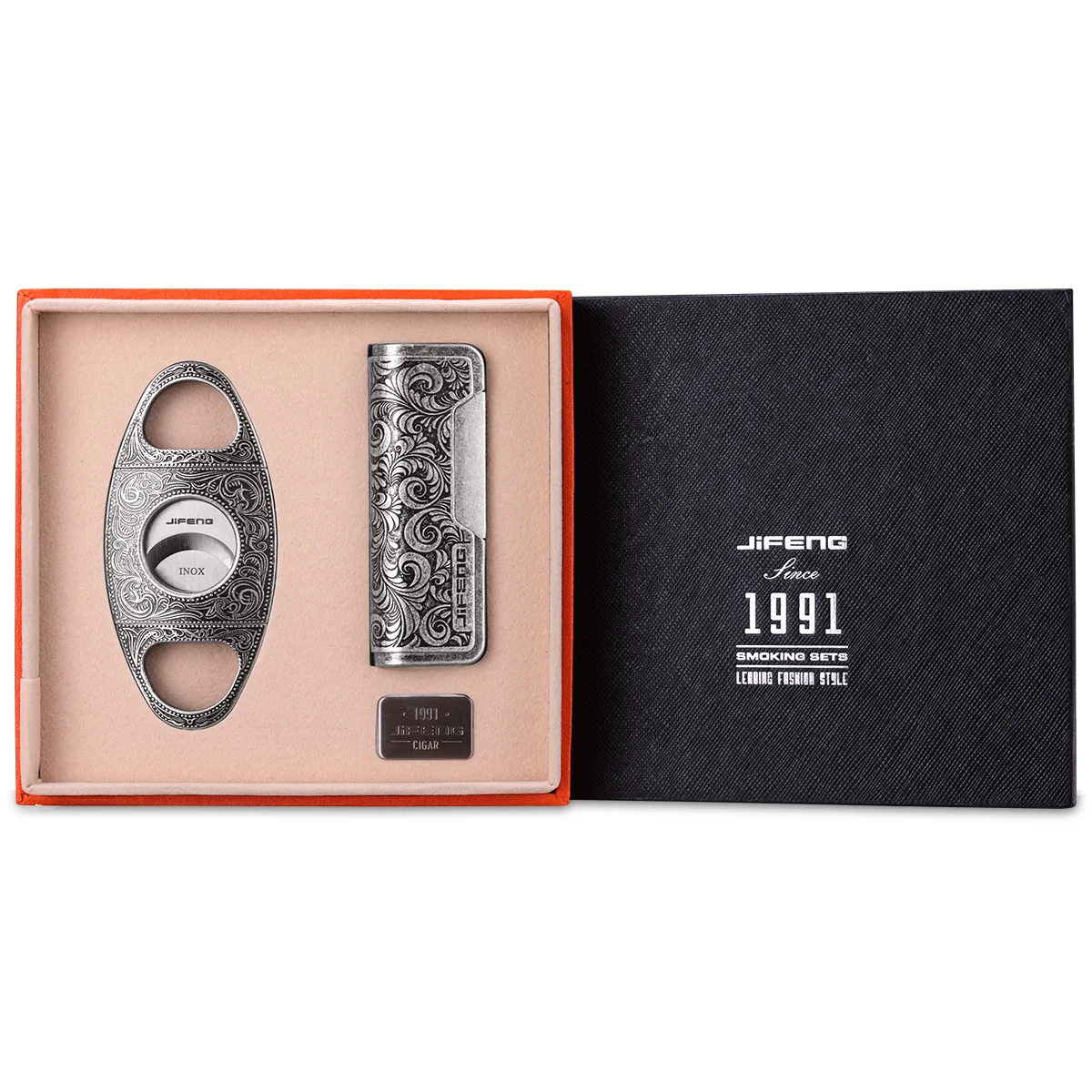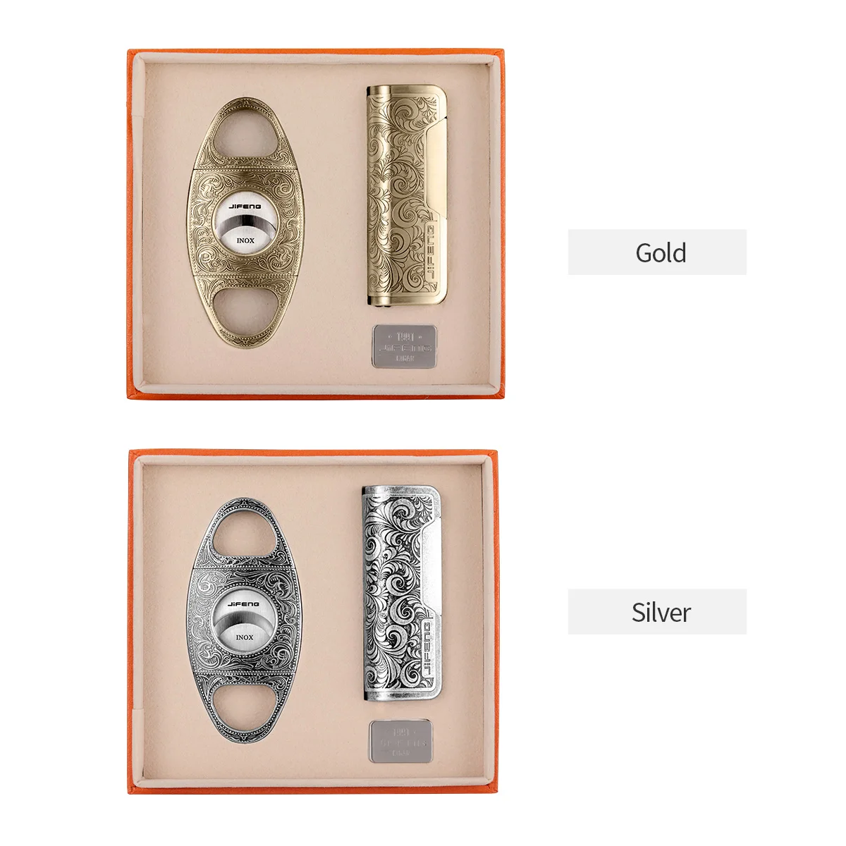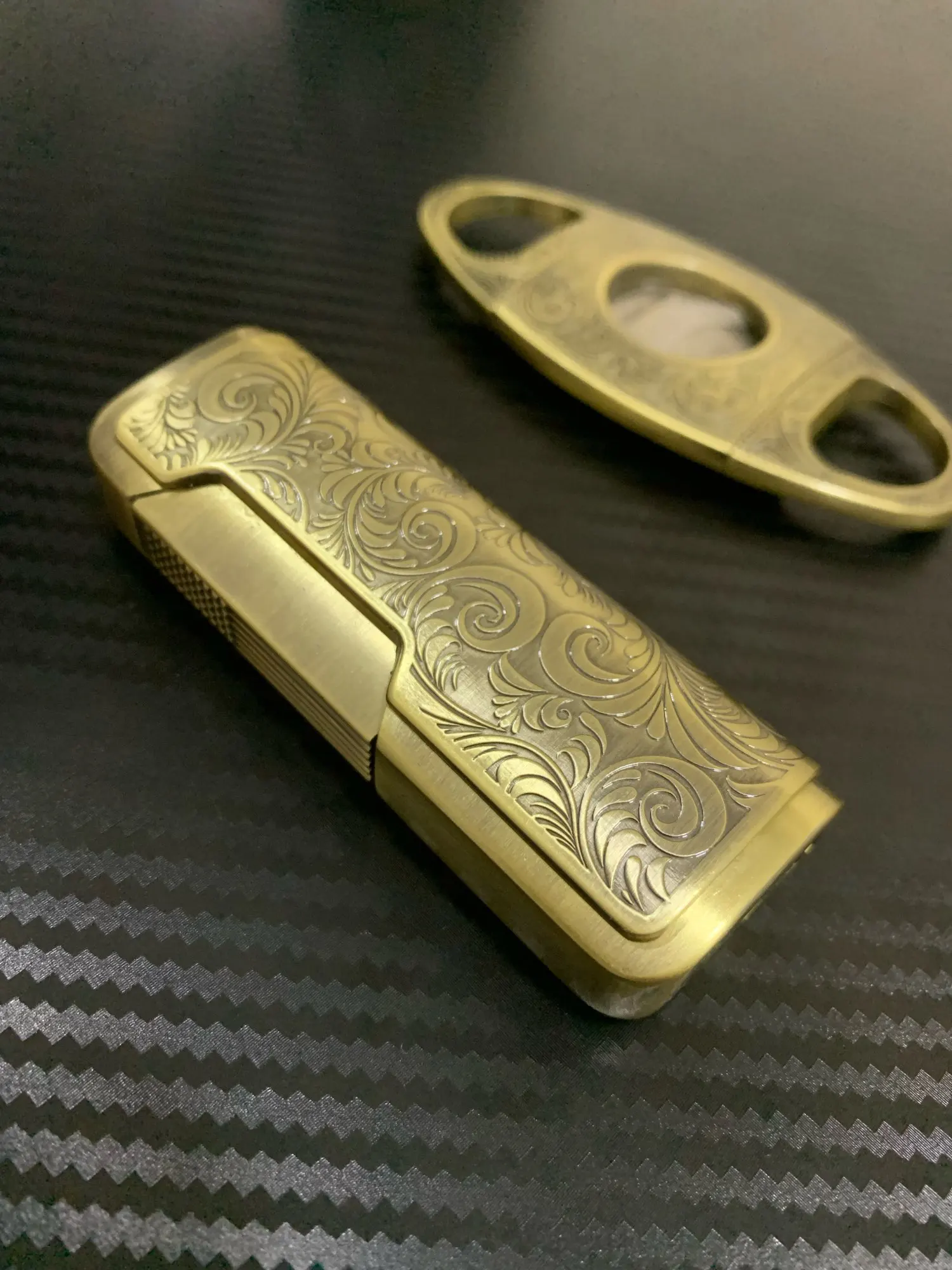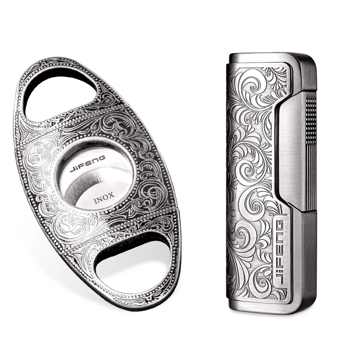 Роскошная Зажигалка для сигар набор резаков для сигар прямые сильный огонь ветрозащитные зажигалки металлический нержавеющий острый резак изысканная резьба