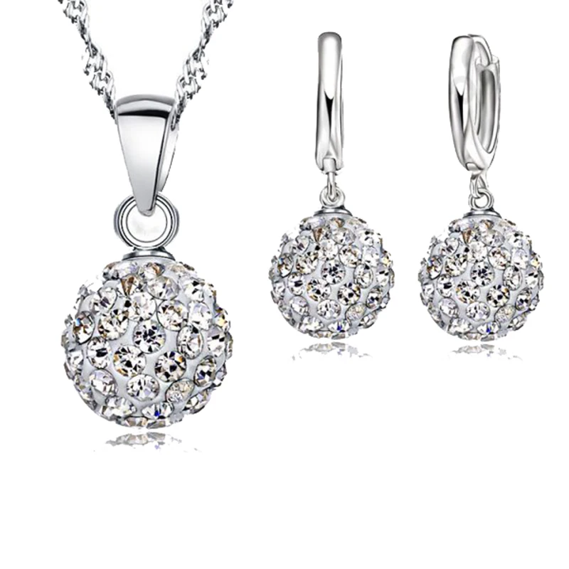 925 Стерлинговое серебро набор украшений для женщин хрустальный шар Блестящий Brillant Повседневный кулон ожерелье серьги круглые большие акция горячая распродажа
