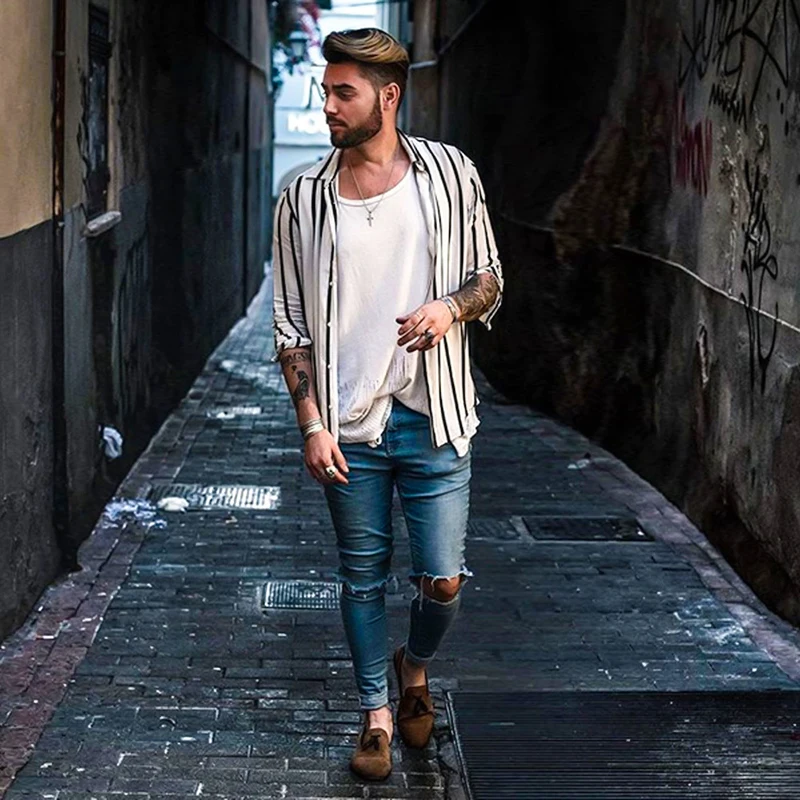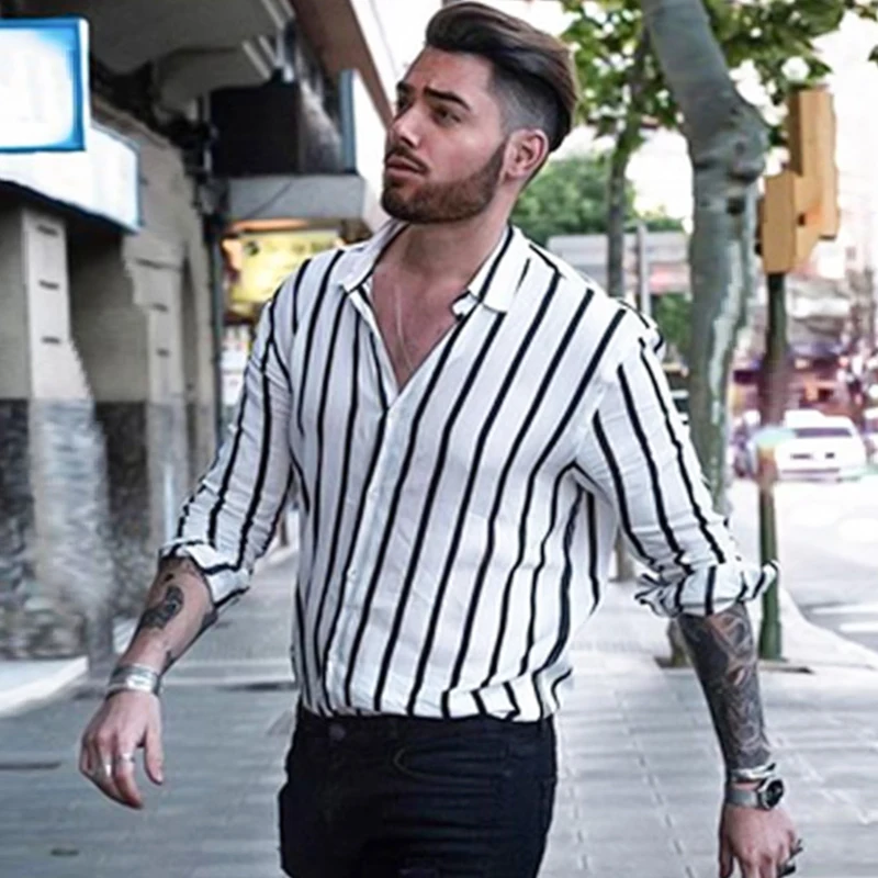 Рубашка мужская приталенная с V-образным вырезом и длинными рукавами