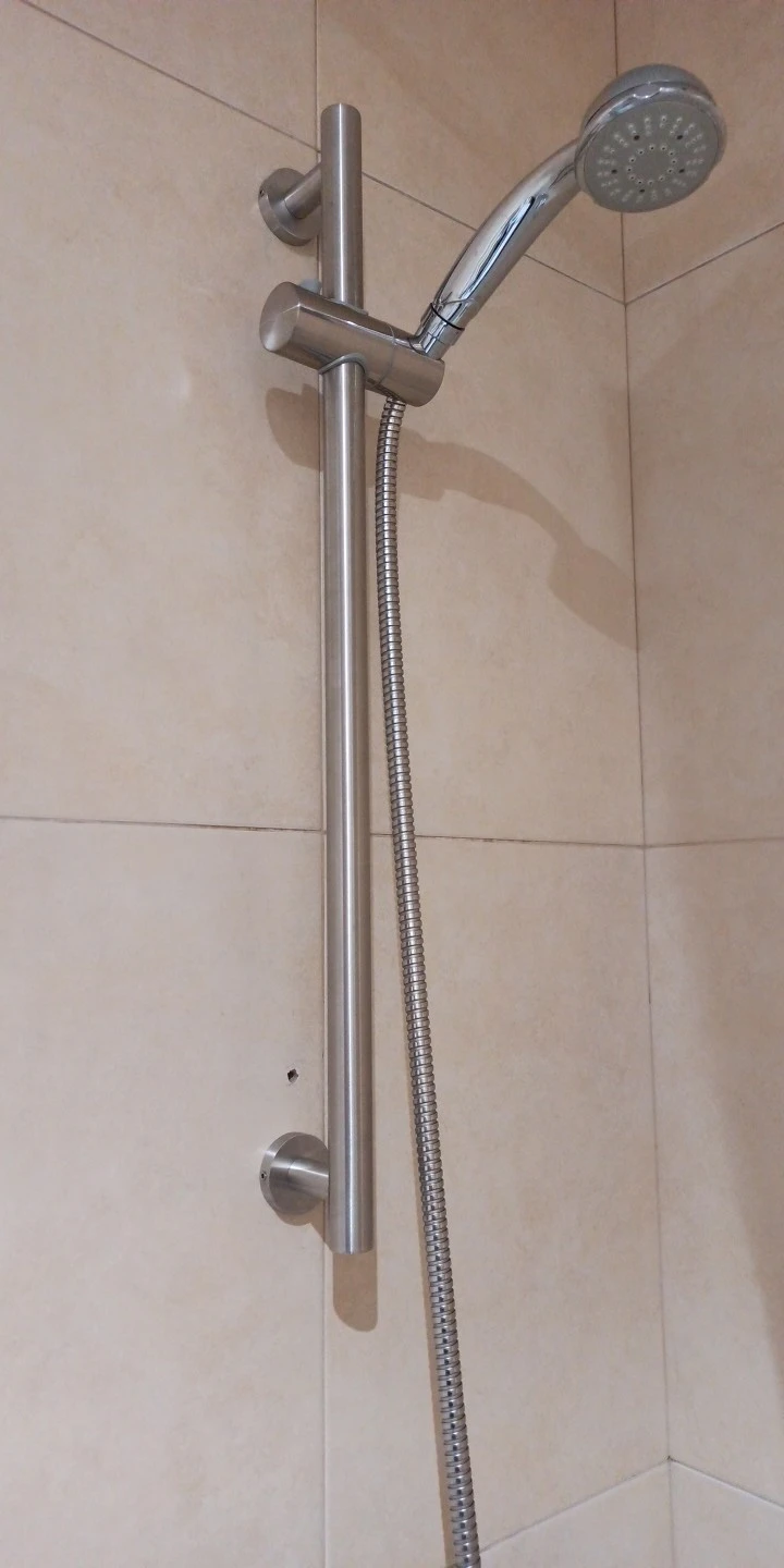 Сама штанга - метал, держатель для душа пластик. Установка стандартная, размеры соотвествуют заявленным