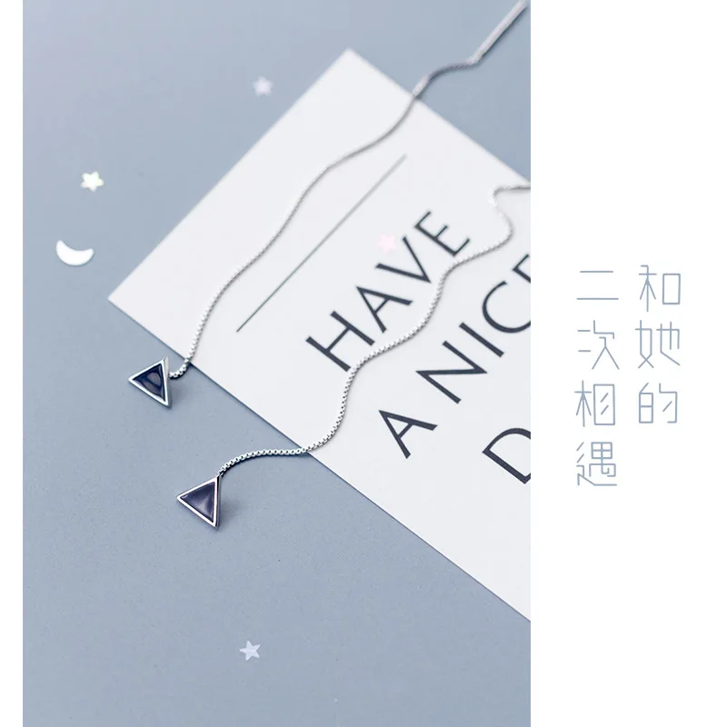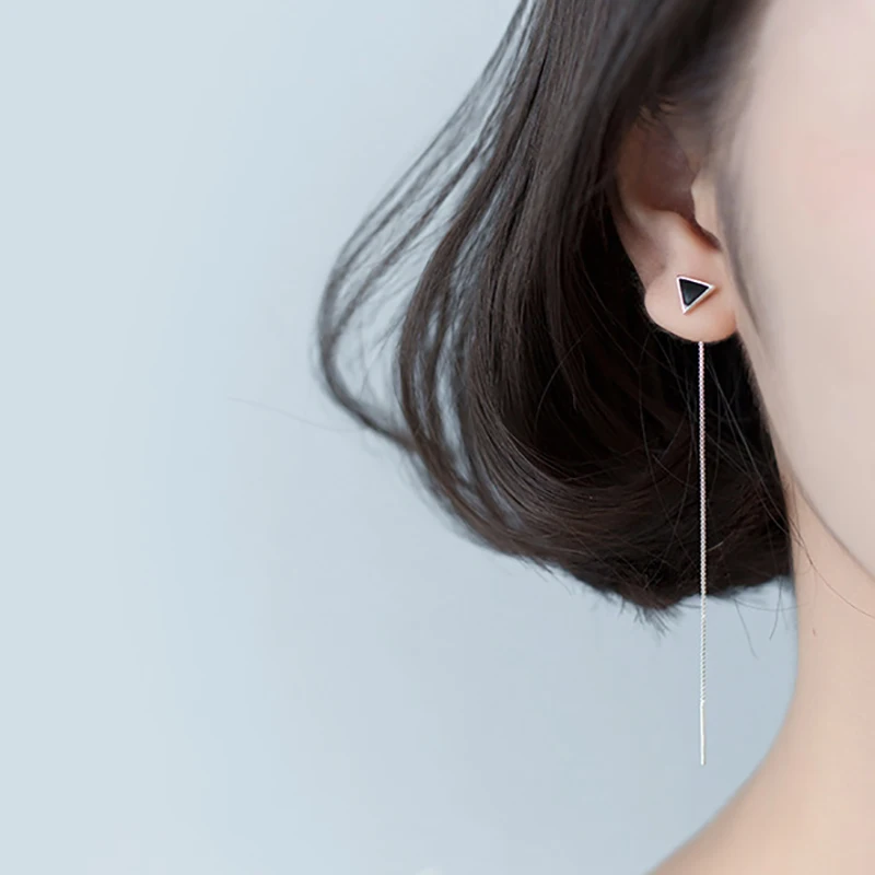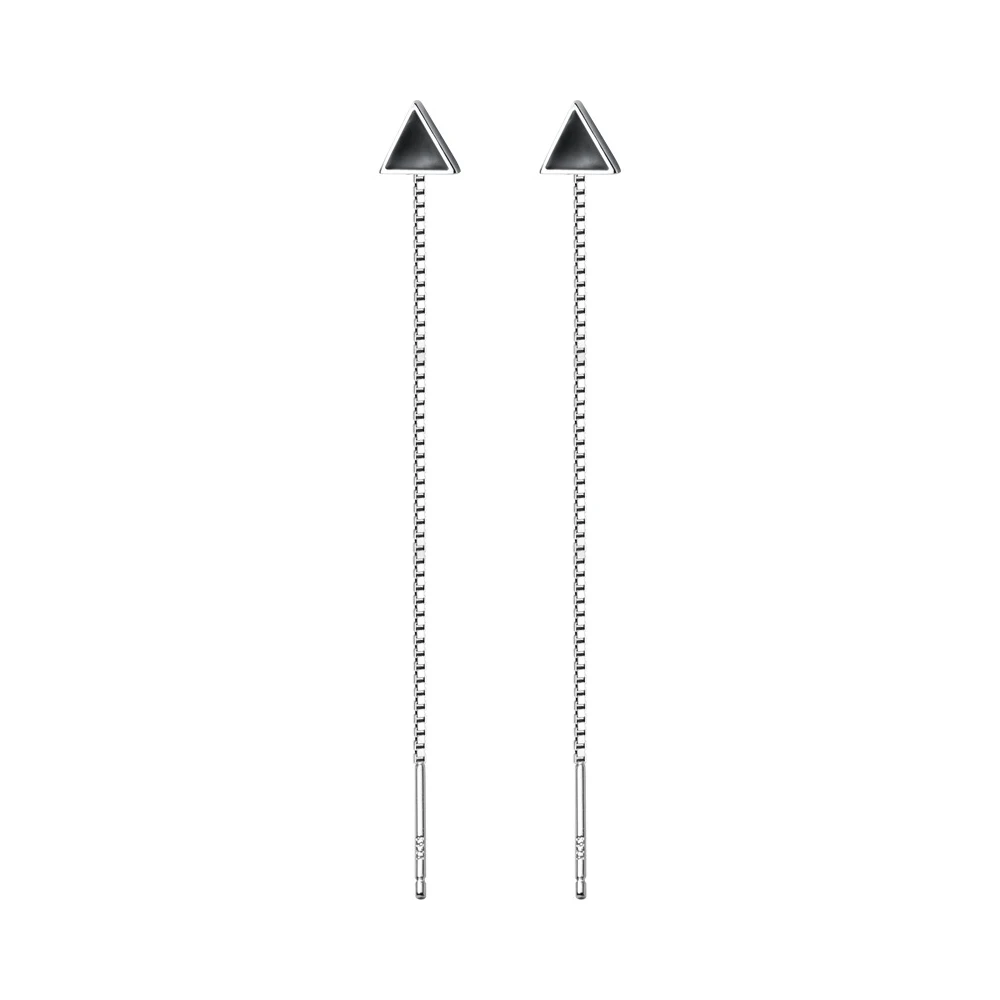 Женские серьги-гвоздики из серебра 100% пробы с черными треугольниками длиной 925 см