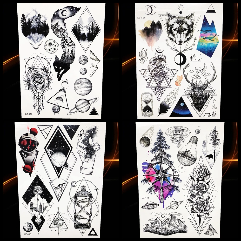 GoldOcean, женские, сексуальные, очаровательные, розовые, временные тату, для мужчин, Геометрическая, Вселенная, тело, Ганс, тату, наклейки, черные, фальшивые татуировки, клей