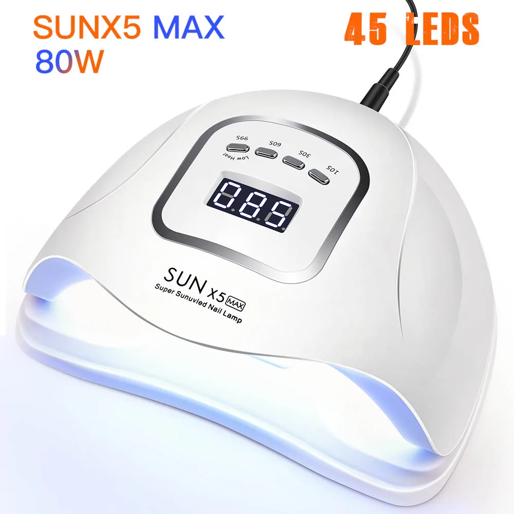 УФ-лампа для сушки гелевого маникюра, 80 Вт, светодиодная лампа, сушилка для ногтей для всех видов гелевого покрытия, инфракрасный датчик, таймер, умный ЖК-дисплей, товары для маникюра