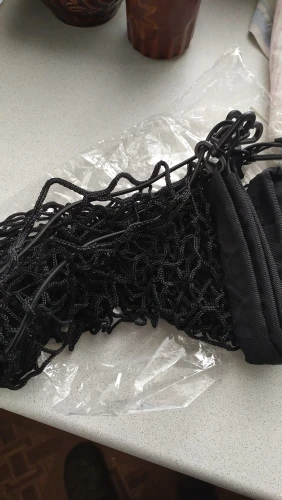 На вид сетка крепкая и достойная. По углам пластмассовые карабины и утягивающая резинка по периметру. Трек отслеживался. продавца рекомендую.