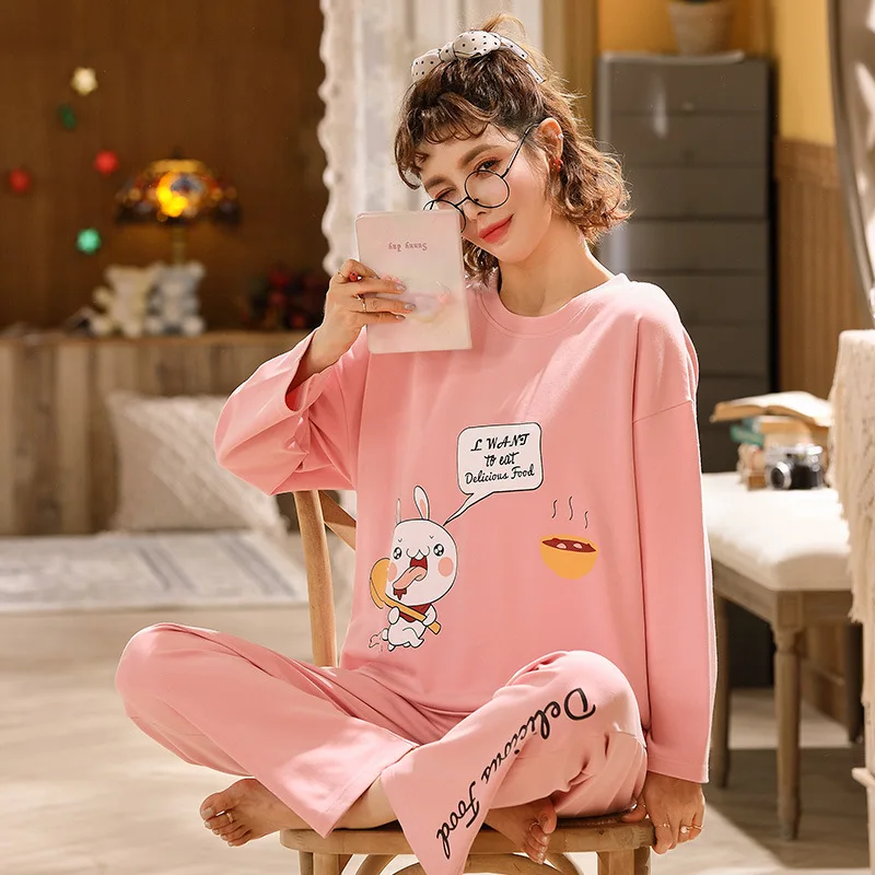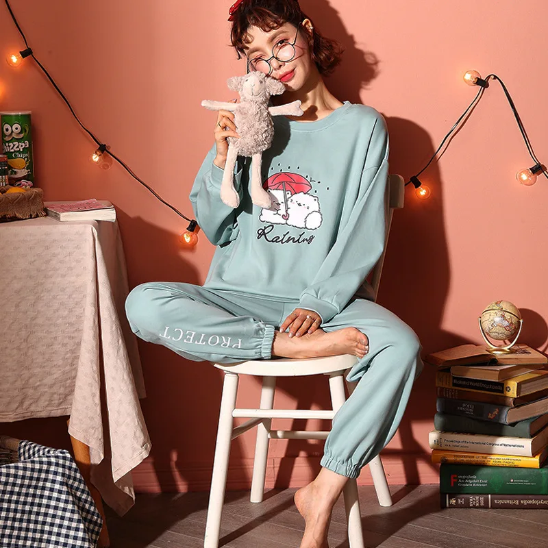Пижама женская осенне-зимняя из плотного хлопка с рисунком