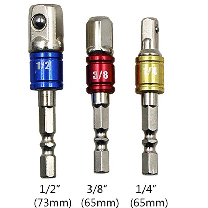 Набор торцевых адаптеров, 3 шт., сверла с шестигранным хвостовиком 14 дюйма, 38 дюйма, 12 дюйма, ударные сверла, втулка для шестигранного ключа