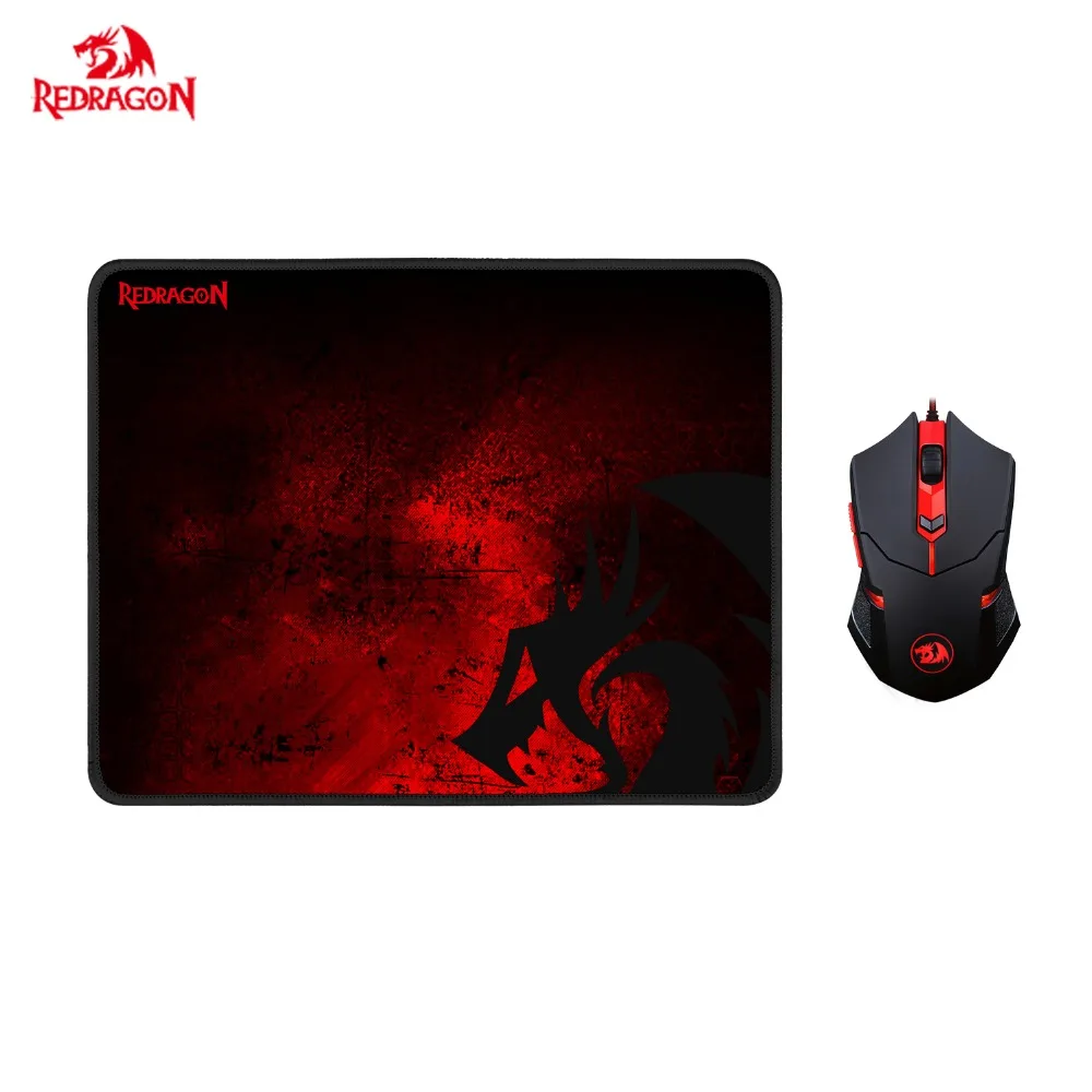 Игровая мышь Redragon M601-BA и большой коврик для мыши Combo , 3200 DPI красная светодиодная подсветка USB Проводная мышь и коврик для мыши