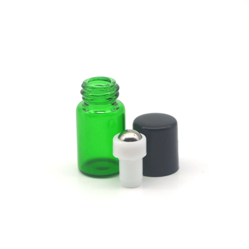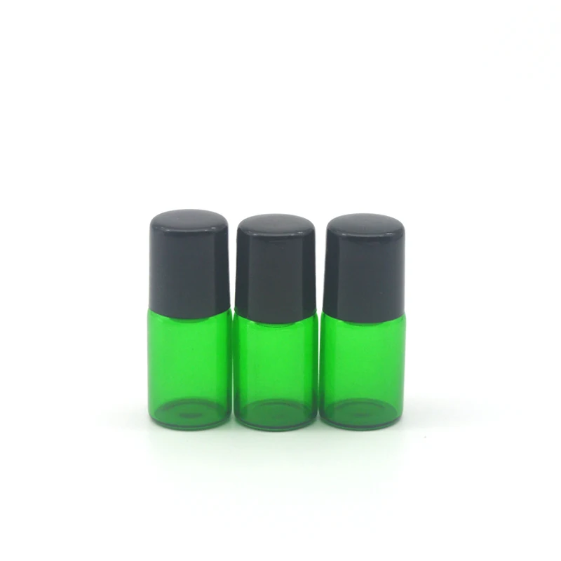 Зеленая стеклянная бутылка в рулоне, пустая бутылка для духов с эфирным маслом, 2 мл, рулонная черная пластиковая бутылка с крышкой