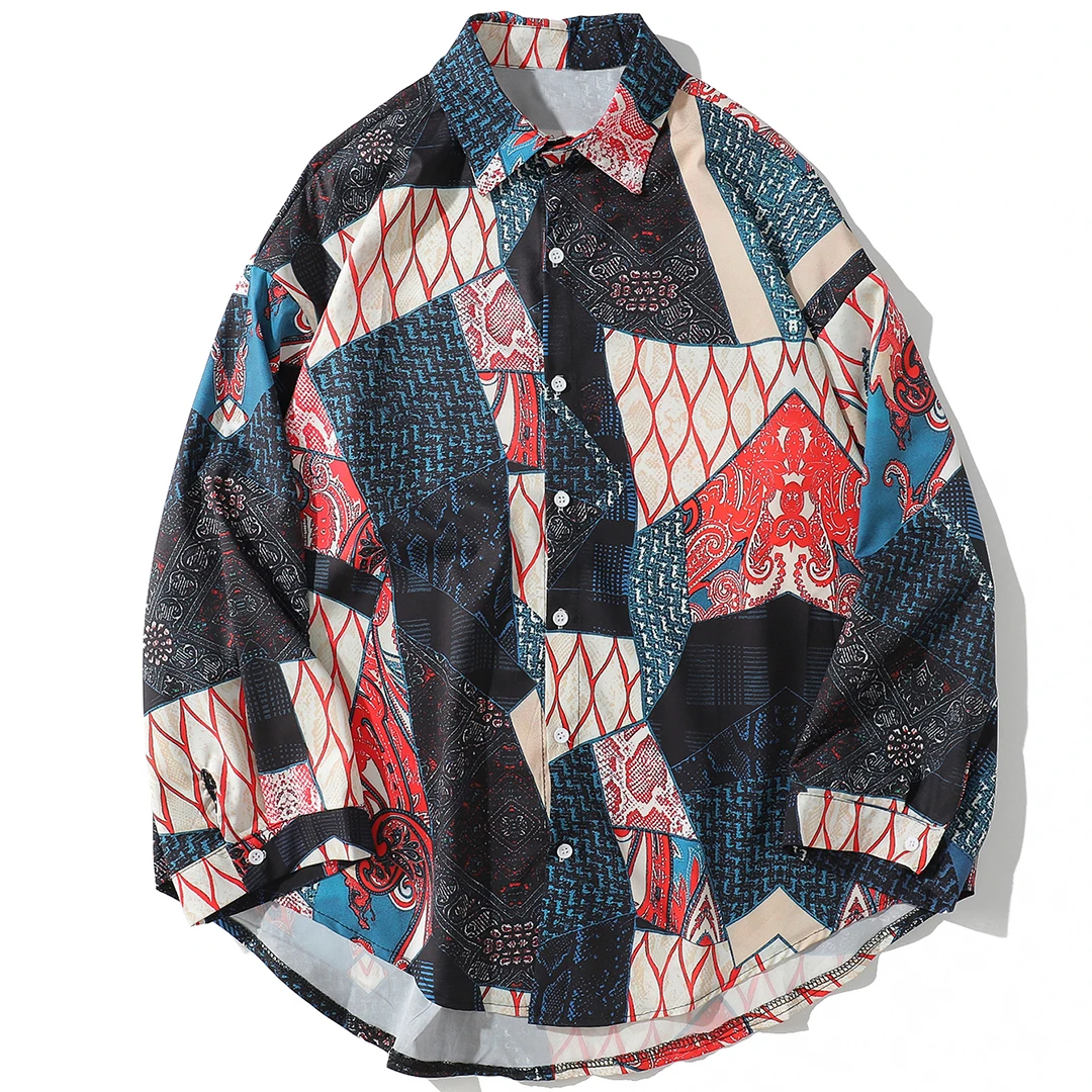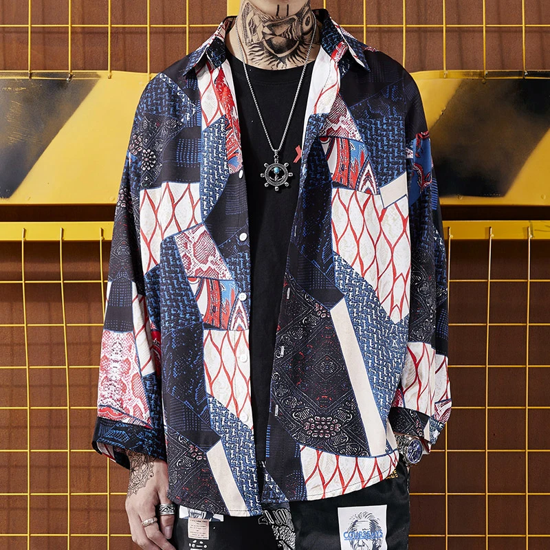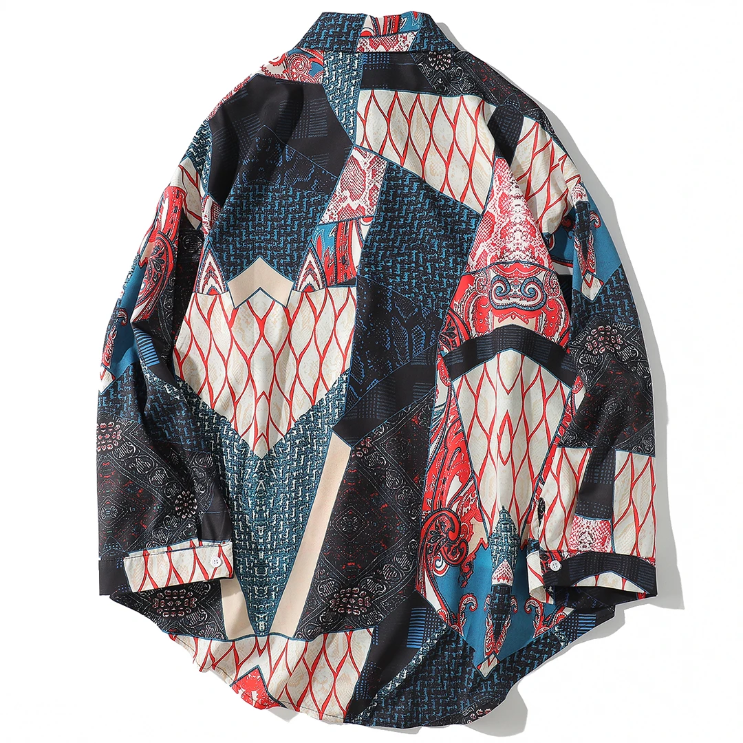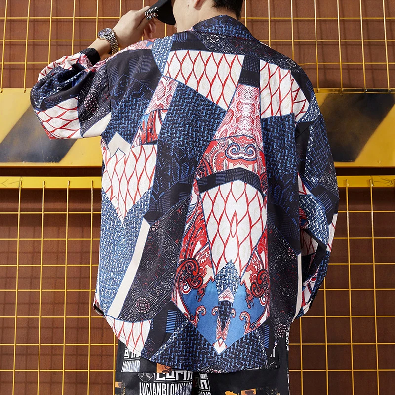 LACIBLE в японском стиле укиё геометрическим узором, стильный кардиган с длинным рукавом рубашки 2021 в стиле хип-хоп; Повседневная Уличная обувь для мужчин женщин рубашка Kj169