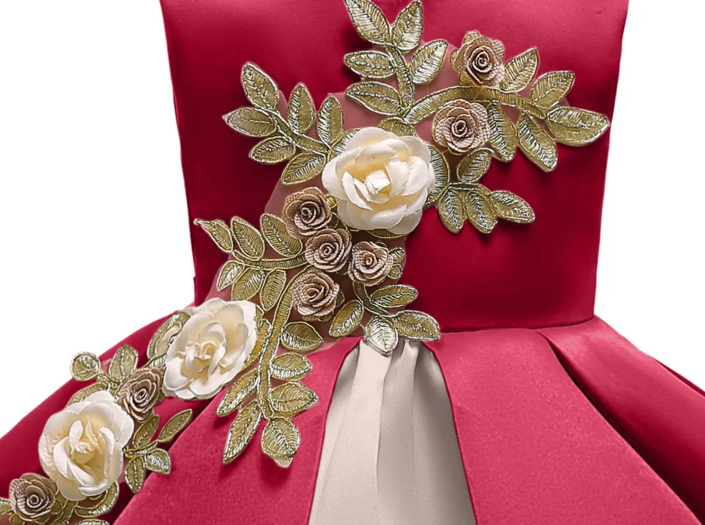 Рождественское красное, зеленое платье с хвостом для девочек одежда принцессы с цветами для малышей Детские Вечерние платья на свадьбу, день рождения для детей 4, 6, 8, 10, 12 лет
