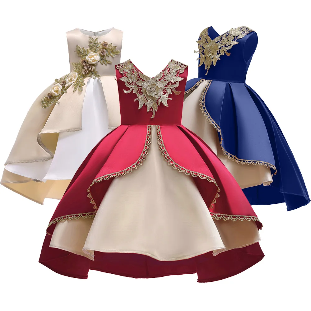 Детское рождественское платье принцессы, красное, зеленое платье со шлейфом, на свадьбу, день рождения, на Возраст 4-12 лет