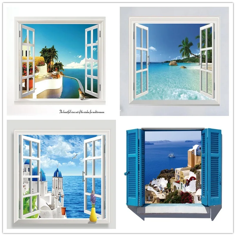 Настенные 3D-наклейки на окно, для гостиной, спальни, кабинета, украшение для дома, пейзаж, море, гора, животное, лес, пространство, ПВХ, настенные художественные наклейки
