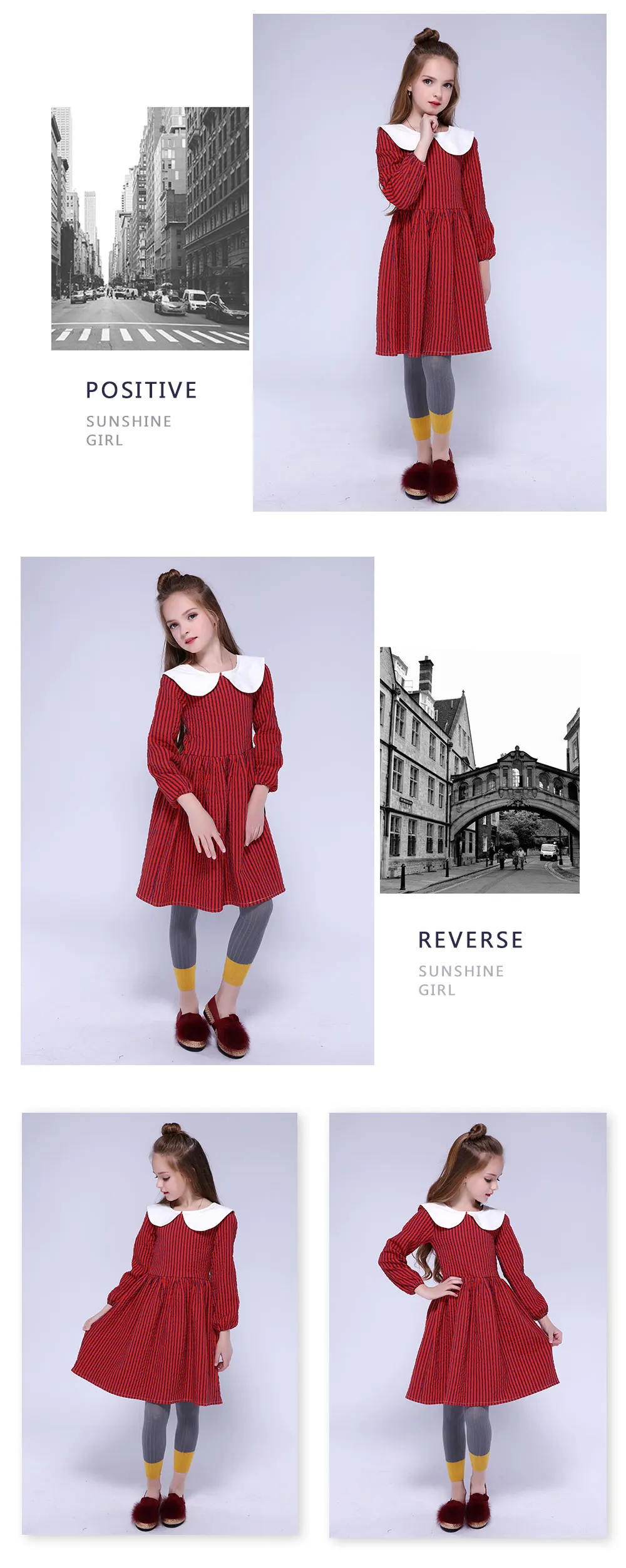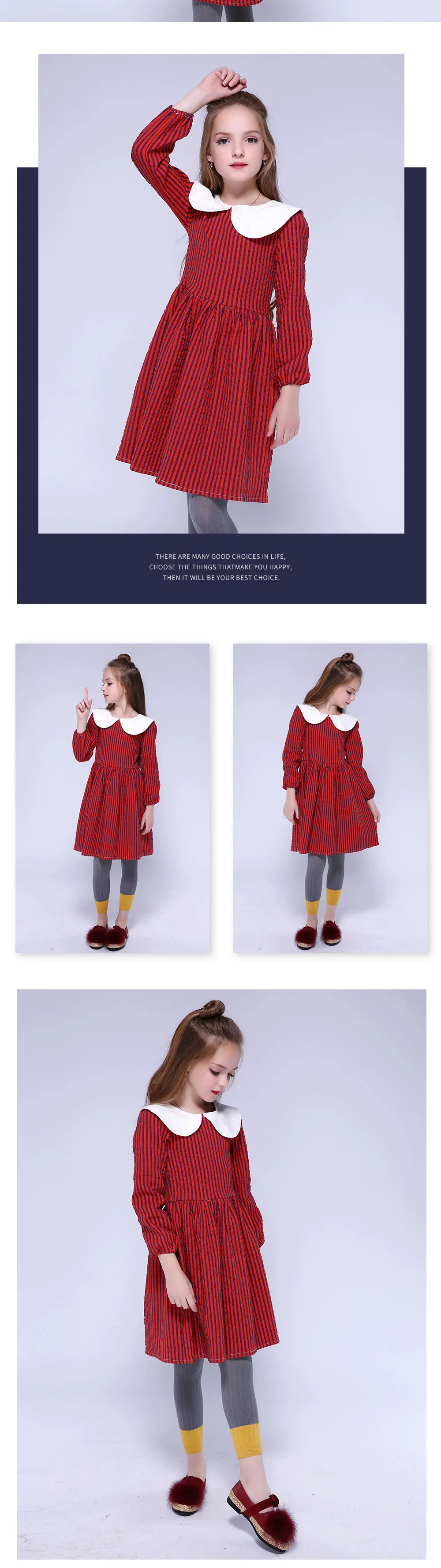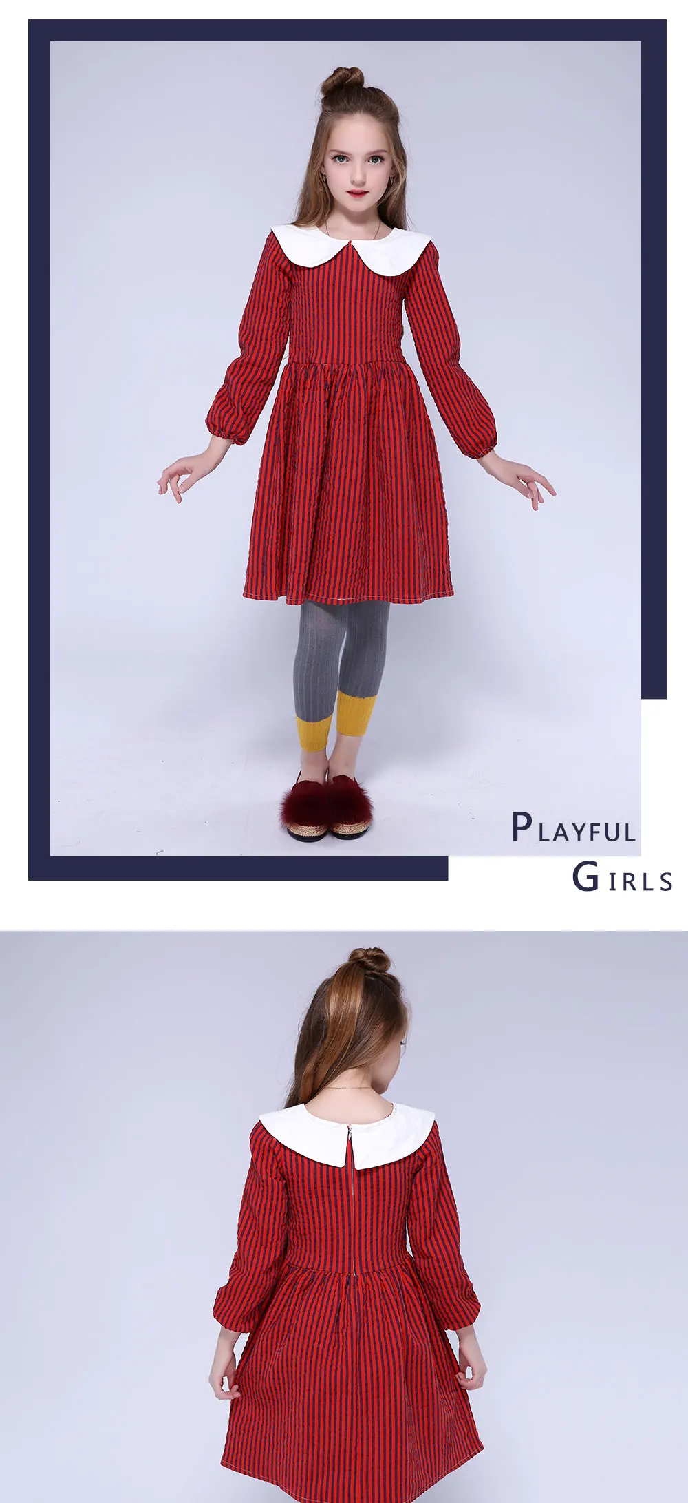 Детское зимнее платье для девочек Kseniya, хлопковые плотные теплые праздничные платья в полоску с длинным рукавом для девочек 8, 10, платье в стиле "Лолита" для маленьких девочек