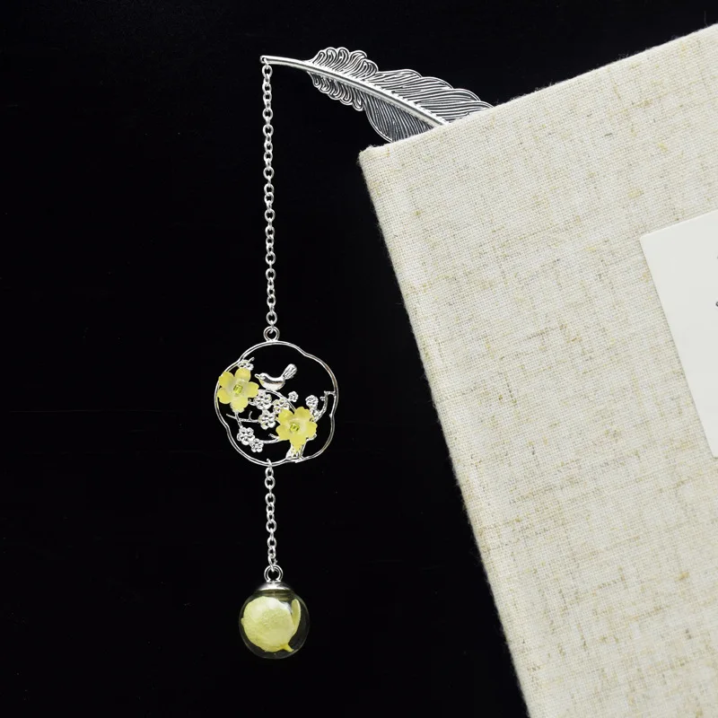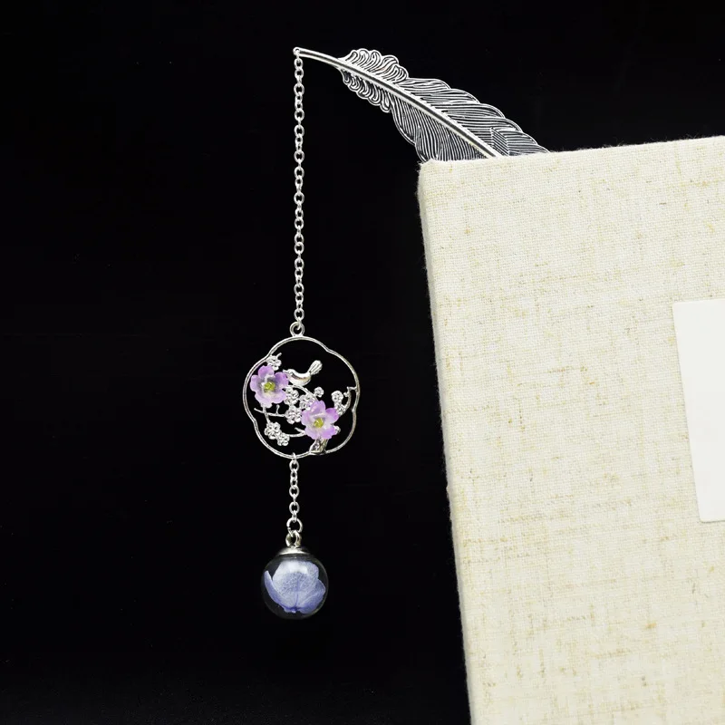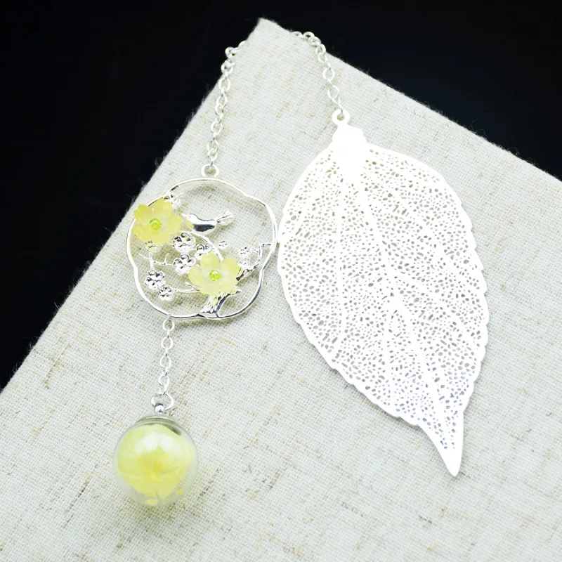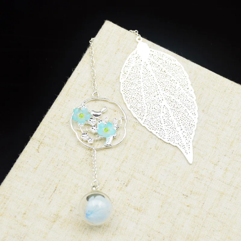 Металлические закладки, 1 шт., классические серебряные перья, листья, кулон с высушенным цветком книжные маркеры, Papelaria, материал Эсколар