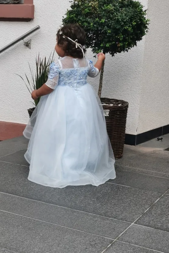 Детское кружевное платье с цветочной аппликацией для девочек, вечерние бальные платья с длинным рукавом для свадебных торжеств и выпускных вечеринок