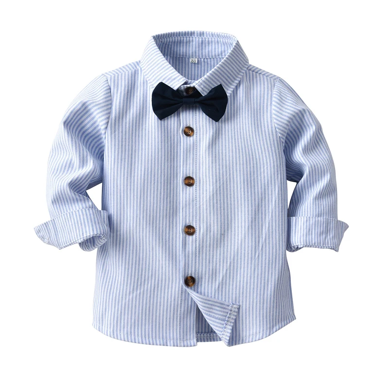 От 1 до 6 лет, костюм для мальчика, комплект вечерние детская одежда небесно-голубого цвета, в полоску, рубашка + галстук-бабочка + брюки + ремень, комплект из 4 предметов для малышей, хлопковые с длинным рукавом костюм с рукавами