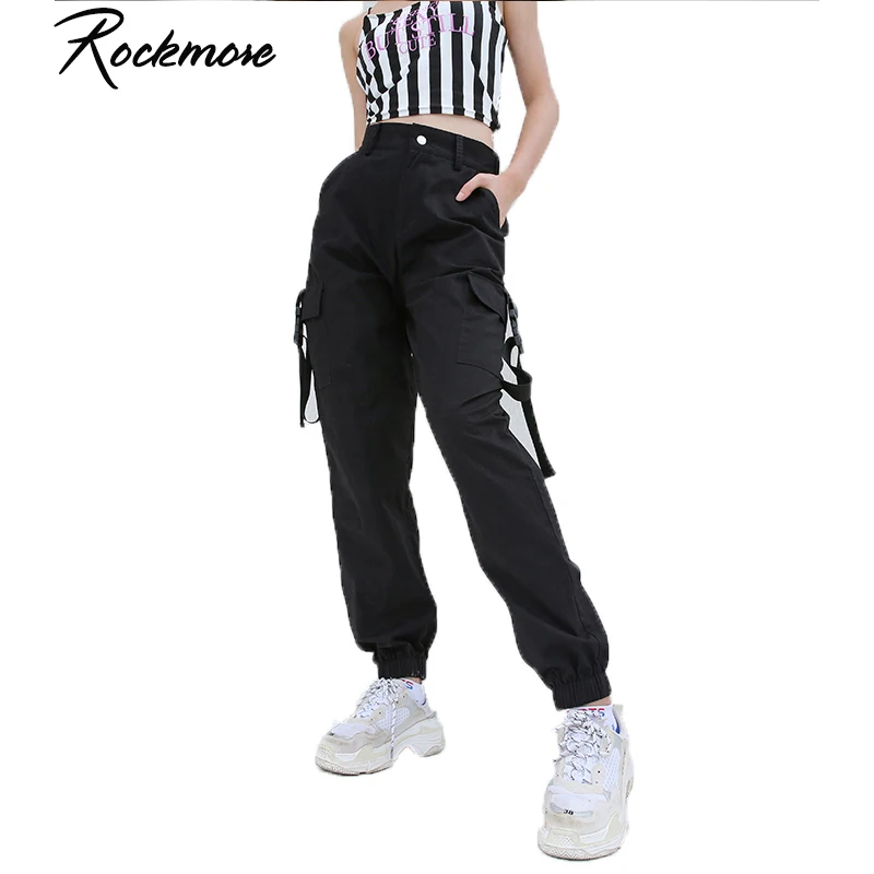Женские брюки-карго Rockmore, однотонные черные брюки-карго с высокой талией и карманами, хлопковые длинные уличные зимние брюки Harajuku 2018