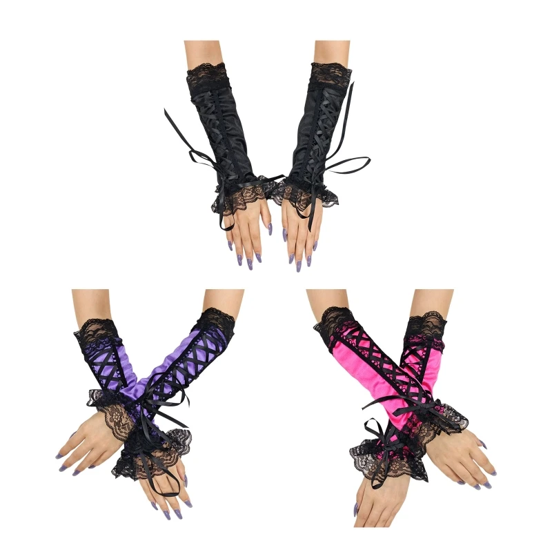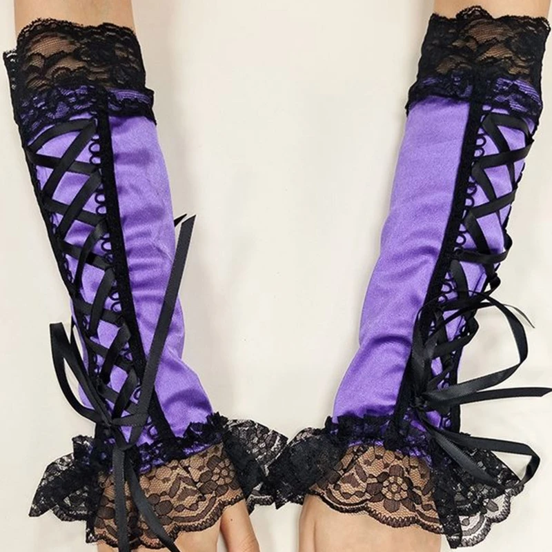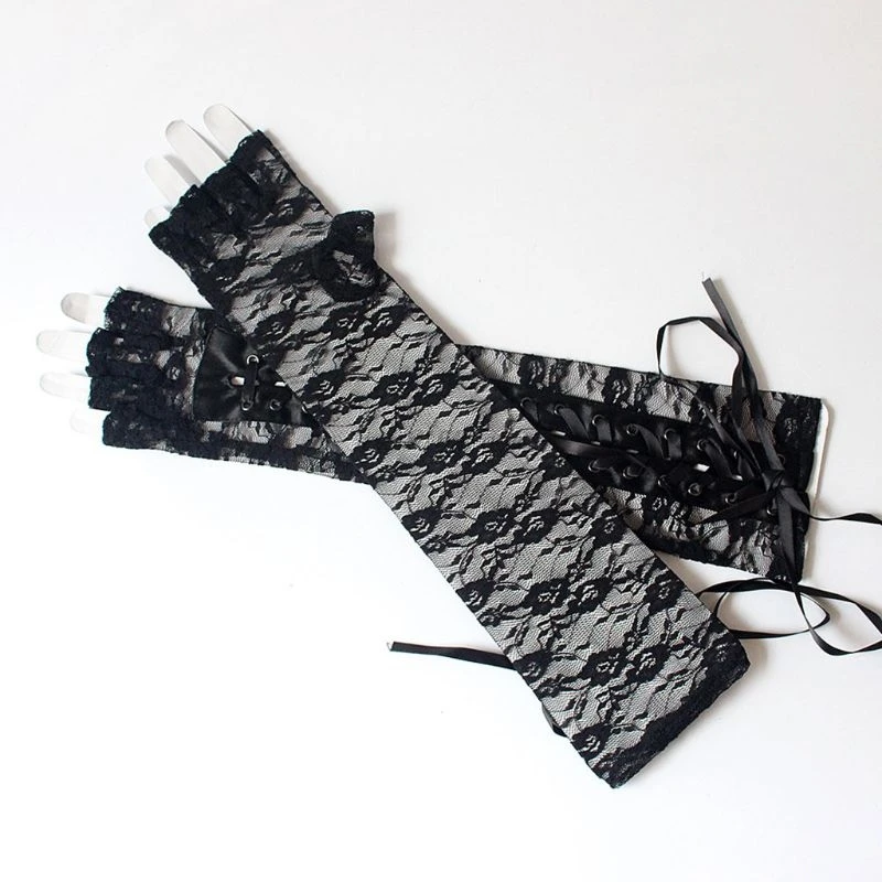 Женские сексуальные кружевные длинные перчатки, зимние перчатки длиной до локтя с полупальцами, сетчатая лента, этикетка для вечеринки