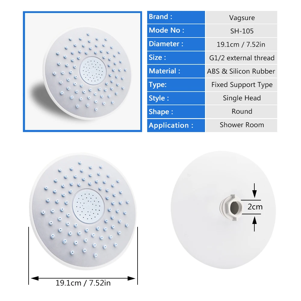 Круглая насадка для душа 19 см из ABS-силикона с резьбой, с водосберегающим покрытием, 1 шт.