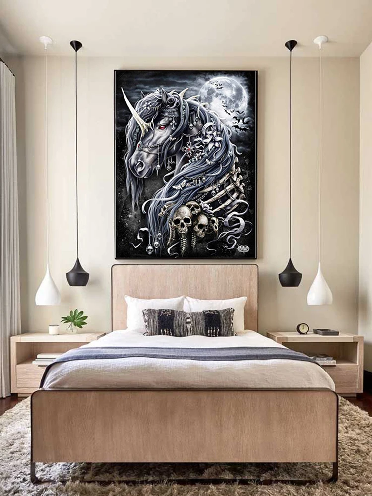 Горячая Распродажа DIY Алмазная картина ночной череп Единорог мозаика 5D Вышивка крестом лошадь полный квадратный круглый дрель вышивка набор домашний декор