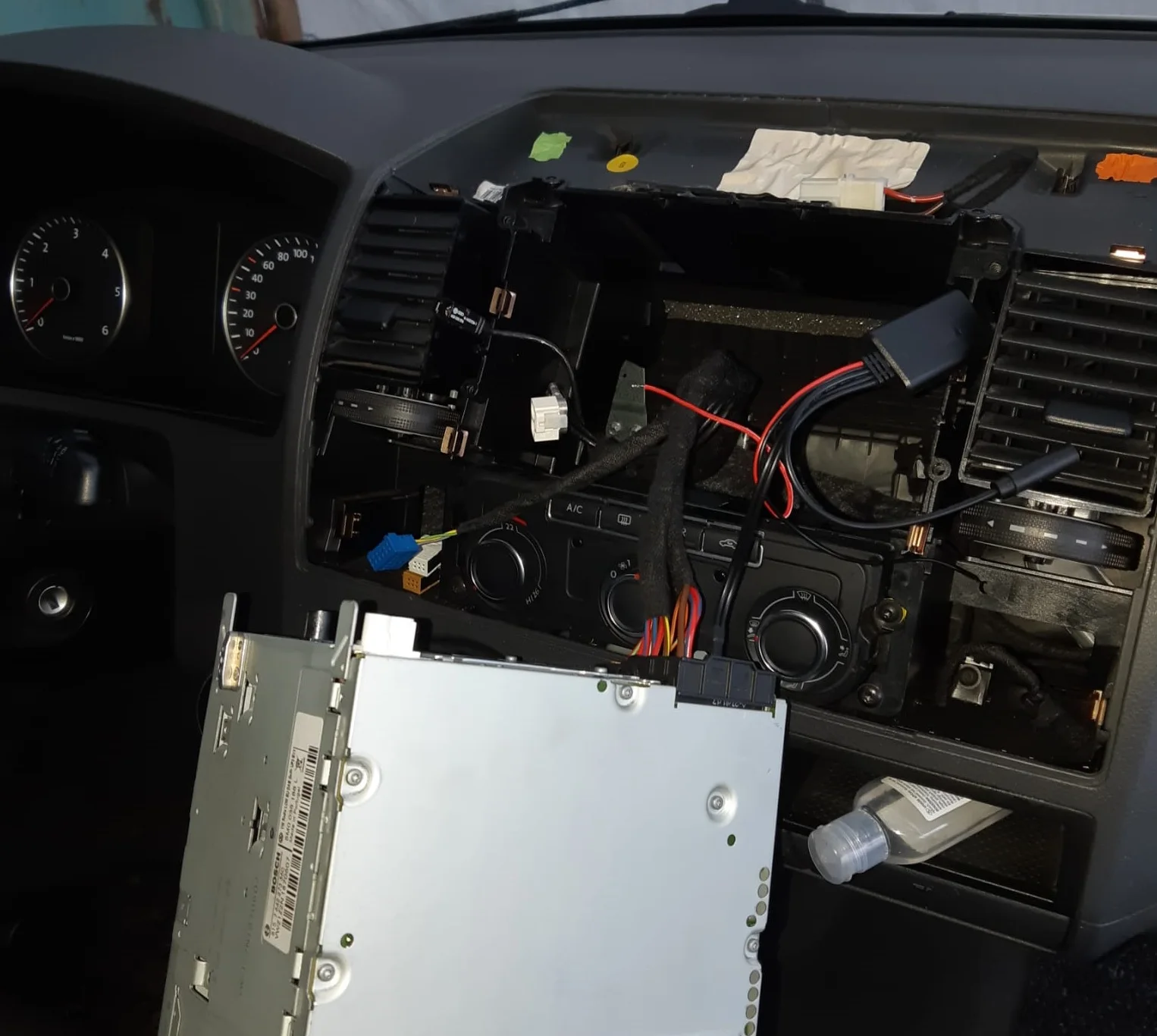 Монтаж на Гольф 5 мфд2 с переключателем 6CD. У меня нет вилки, поэтому я установил контакты в оригинальный разъем переключателя 6CD на CD-R CD-L и CD-землю. Это работает. Bluetooth работает быстро. Звук хорошего качества. Голосовой и микрозвонок тоже работает.