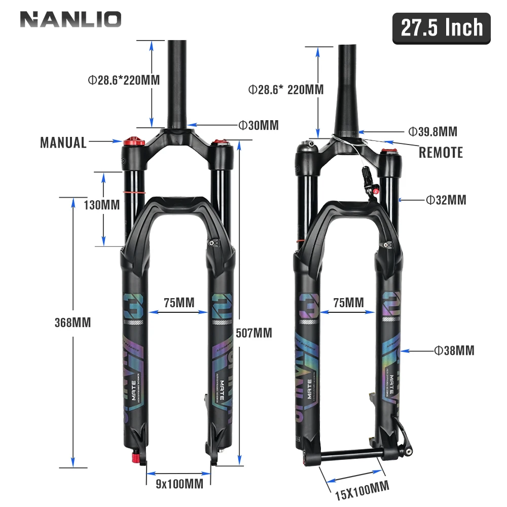 Велосипедная вилка NANLIO Велосипедная вилка 26 27,5 дюйма 29er 120140 мм горная вилка для горного велосипеда масло для подвески и газовая вилка Дистанционный Замок 1,7 кг