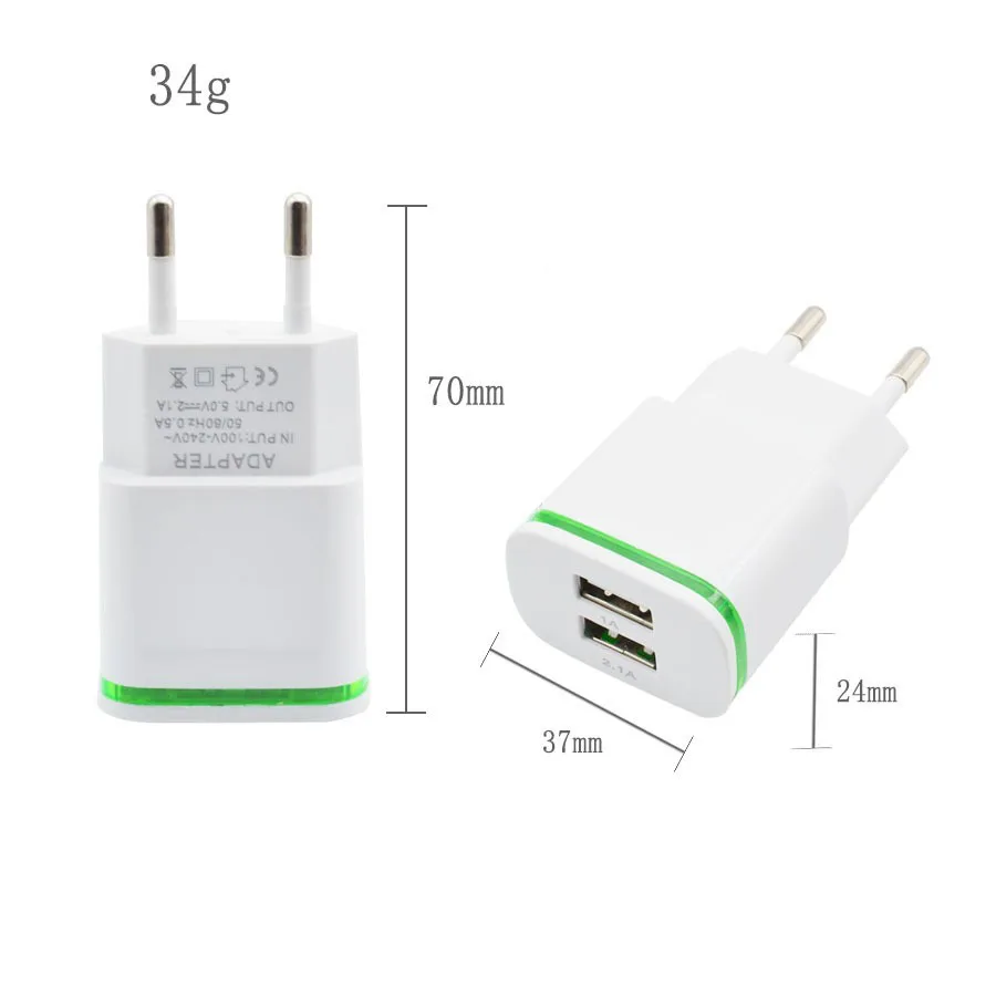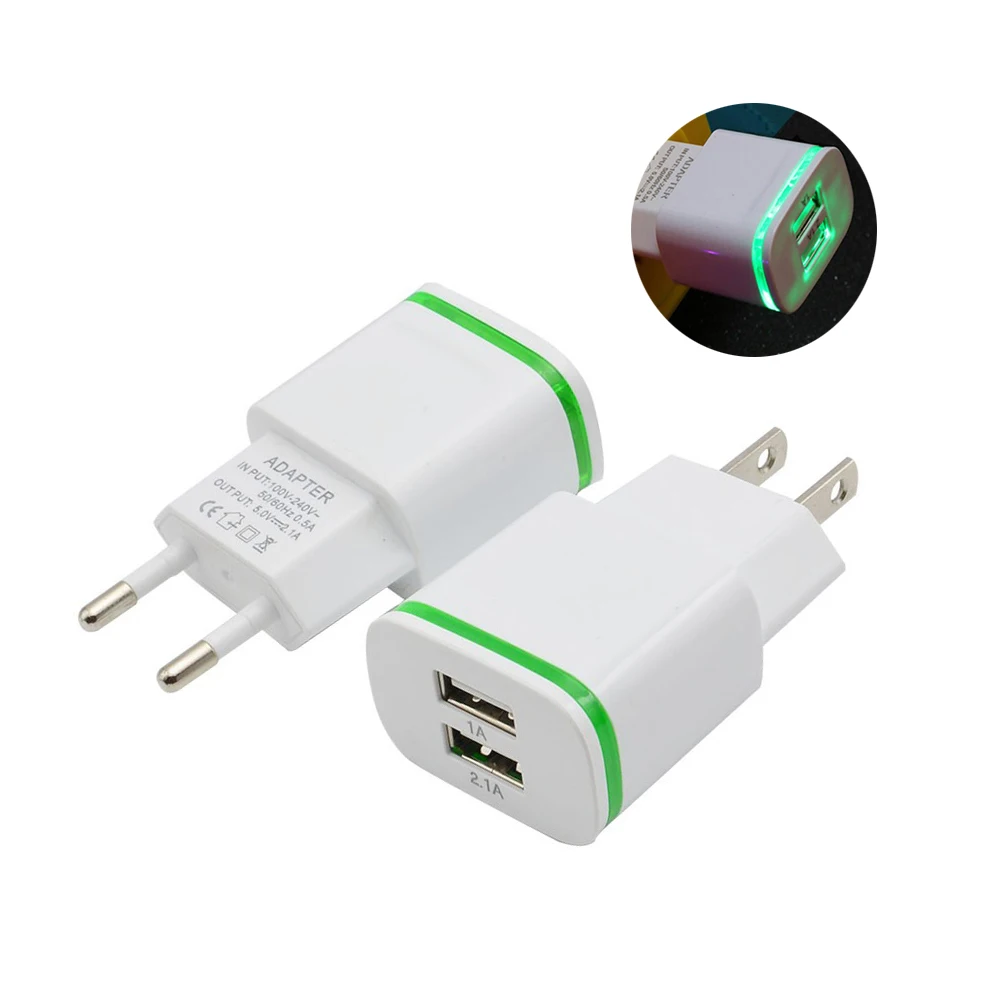 Зарядное устройство 2 USB со светодиодной подсветкой, настенный адаптер для быстрой зарядки, 2 А, ЕС, США, для Iphone 8, 8P, 7, 6, xiaomi redmi 4X, note 4X, 5 plus, 5, note5a, redmi 2A