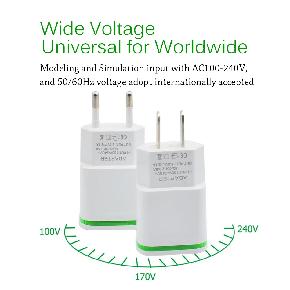 Светодиодный ное Зарядное устройство USB 2A, адаптер для европейско...