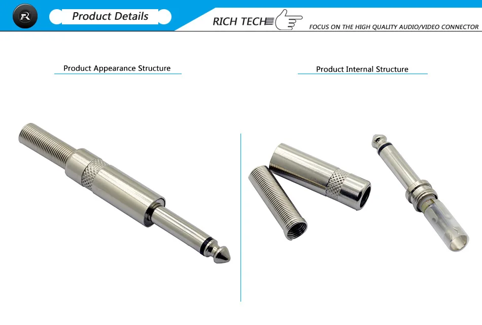 10 шт.лот, 6,35 мм, 2-полюсный моно-штекер, аудиокабель, проводной разъем, 14 дюйма, моно-разъем с пружинным разъемом для микрофона