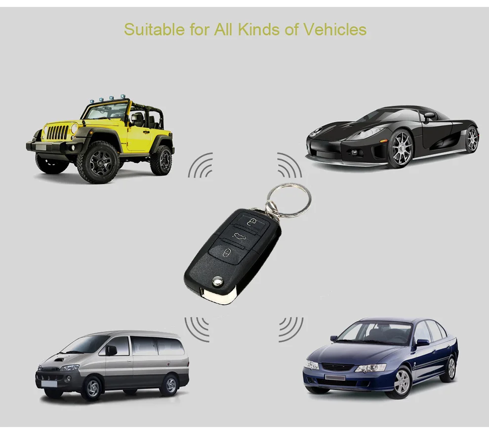 1. Комплект удаленного центрального замка представляет собой полный комплект. Подойдет для любого автомобиля.