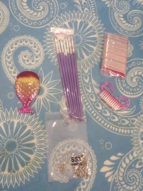 Очень полный комплект, но металлическая часть из 3 кистей повреждена. Заказ прибыл в течение 3 недель
