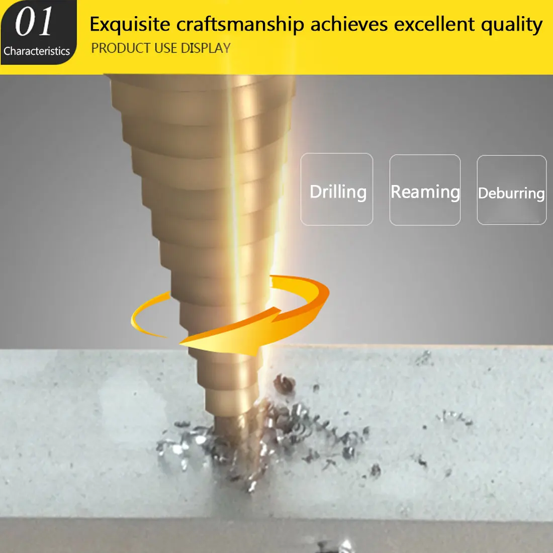 2. Новая HSS стальная большая ступенчатая конусная дрель титановая долота набор резец отверстия, который сделан из HSS стали, и с титановым покрытием для уменьшения трения и тепла