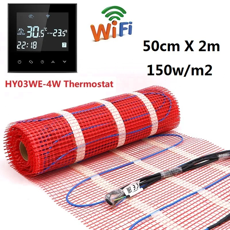 MINCO HEAT 1m2 Электрический напольный нагревательный коврик 150 Втм2 50cmX2m зимний коврик с термостатом для комнатного обогрева