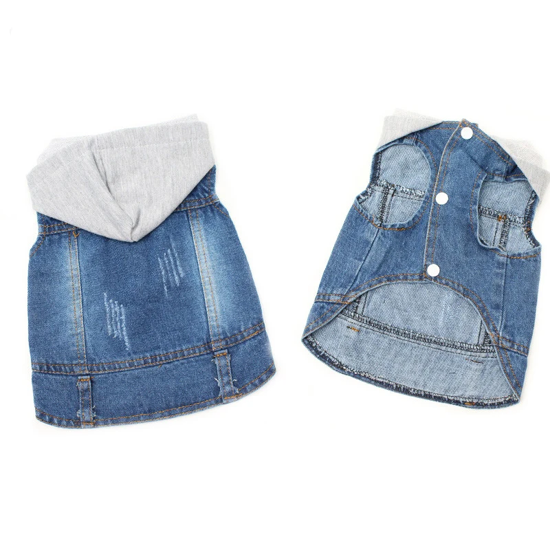 Джинсовая куртка без рукавов для домашних питомцев, дизайнерская одежда с капюшоном для весны, джинсовая куртка для Йорка и щенка, жилет для маленьких и средних собак, голубого цвета