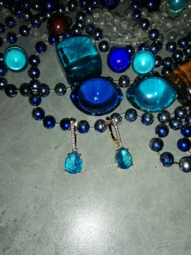 Очень красивая и необычная бижутерия. Камушки прекрасного голубого цвета очень освежают образ! Единственное что удивило дак это необычная застёжка, она одевается с задней стороны мочки а не спереди как обычно. Сережки довольно увесистые но очень милые. Спасибо продавцу за такую красоту и качество!