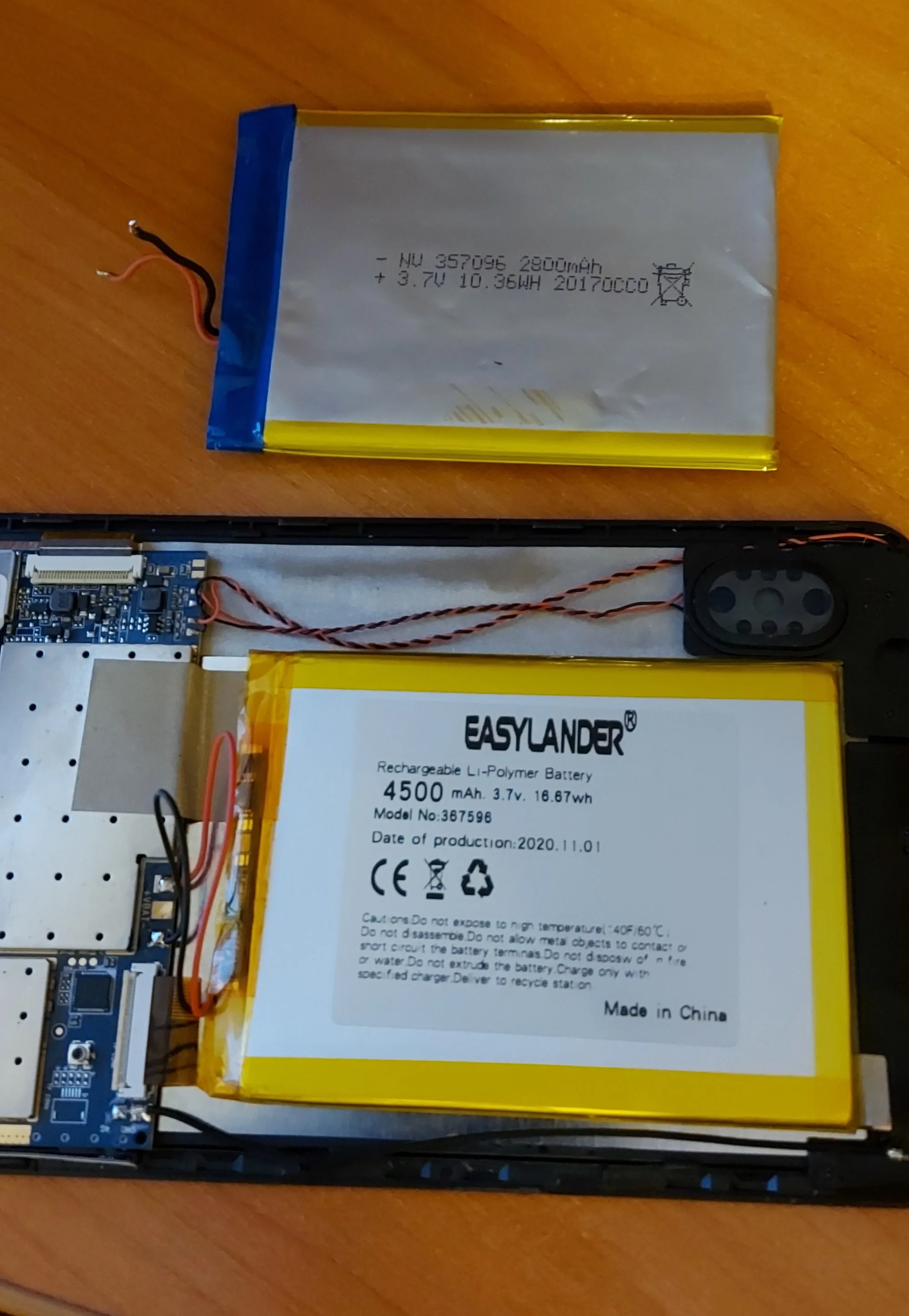 Очень двоякое ощущение с этой покупки. По доставке довольно долго, больше месяца. Но привез домой курьер. Размеры не совпадают с указанными в описании. На наклейке указана емкость 4500 и технология li-pol а не li-ion, это конечно здорово если это правда, но правда ли это??? Какая то херня короче. Действительность характеристики на наклейки у меня вызывает большое сомнение .На мой планшет не подошло, но продавец посоветовал перепаять плату от старого акк к новому и все заработало. Буду смотреть как батарея будет держать заряд, чуть позже добавлю отзыв.