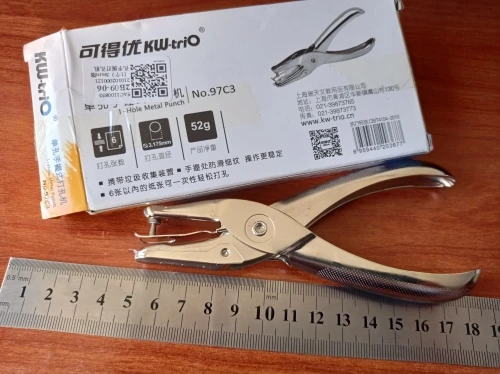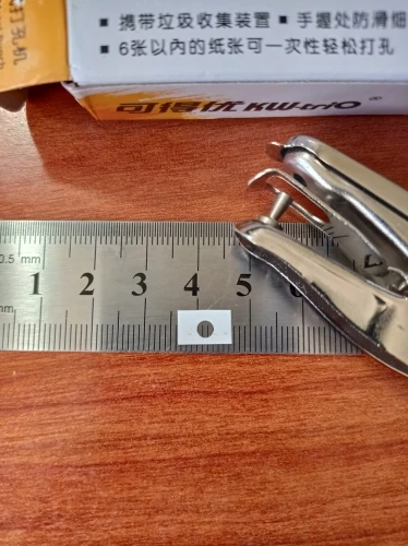 works as it should, tested both on paper, as on hard felt. 3mm hole, half the size of the regular hole puncher