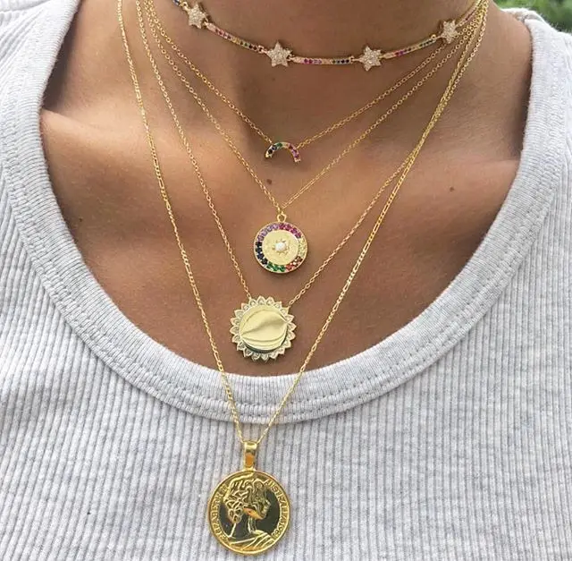 Личность Звезда Ожерелье для женщин колье 2021 с серебряным покрыти...