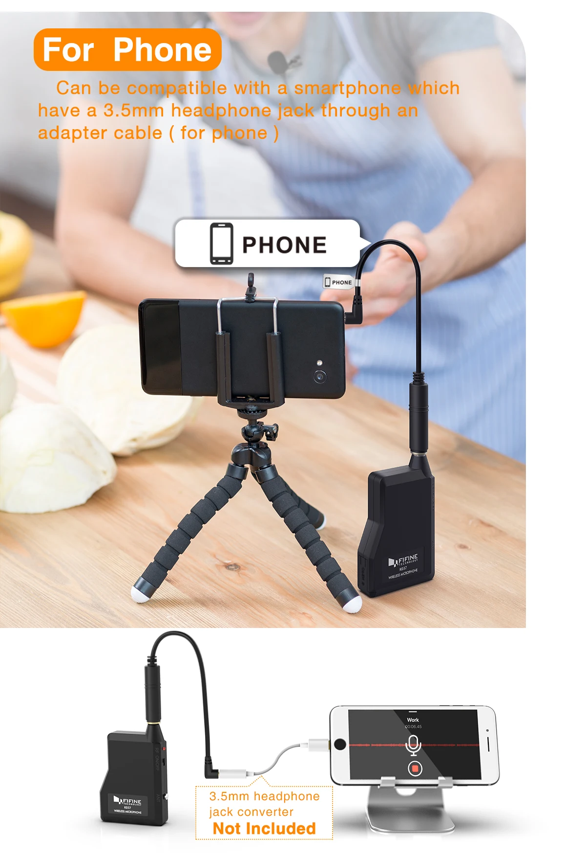 Беспроводной петличный микрофон Fifine, микрофон с трансмиттером, 20 каналов, высокие частоты, портативный ресивер