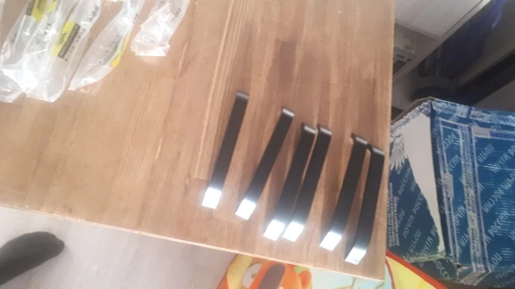 ручки как на фото. замечательно смотрятся. единственное что доставляли дольше указанного времени. скорее всего потому что выпало на новый год. доставка осуществлялась службой CDEK. посылка почему то пришла через Казахстан. вначале не отслеживалась толком. Упакованно хорошо, каждая ручка в своей обертке с фото (наверное продавца). в комплекте необходимые шурупы в достаточном количестве. Все качественное, без изъянов. рекомендую