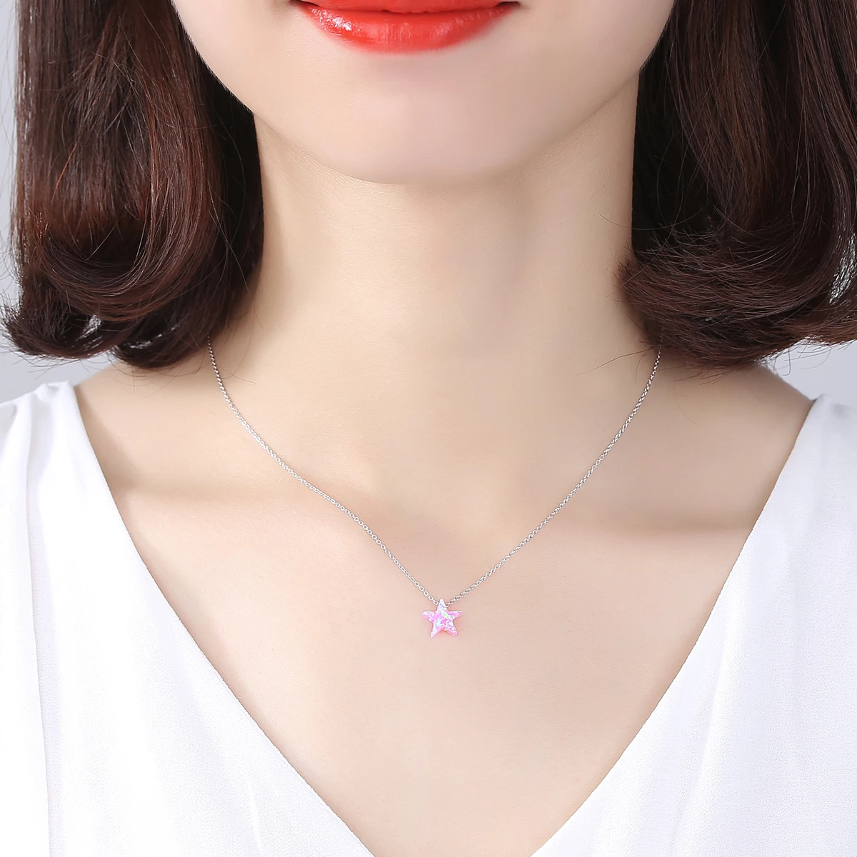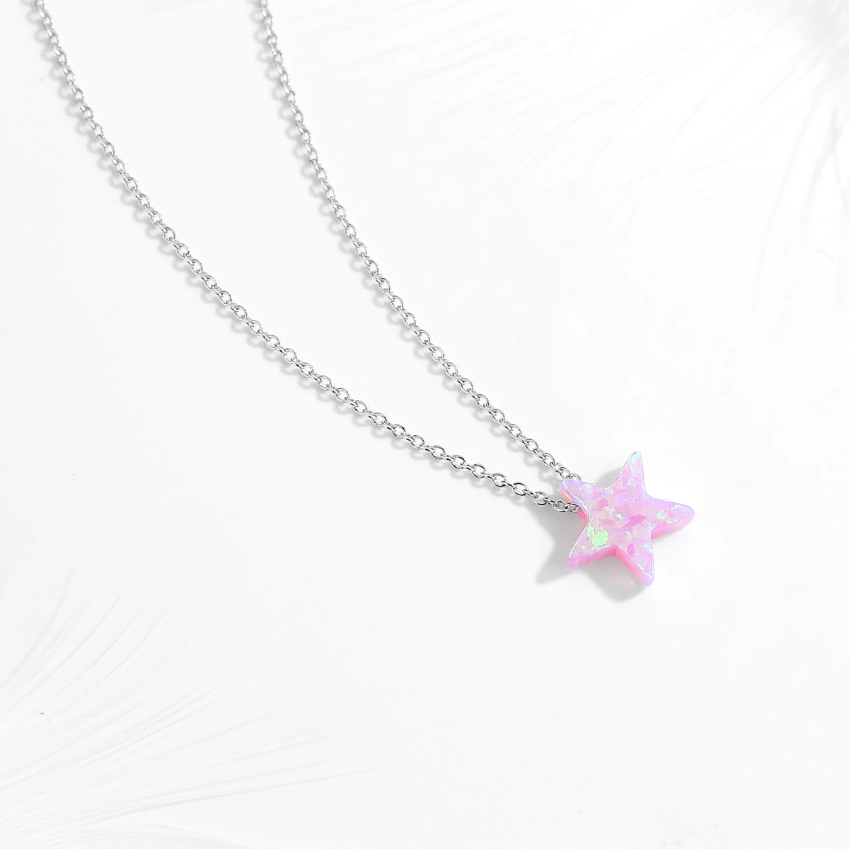 Ожерелье KALETINE с подвеской в виде звезды из синтетического опала женское Очаровательное ожерелье из стерлингового серебра 925 пробы с розовым голубым камнем ювелирные изделия Длинная цепочка ошейник