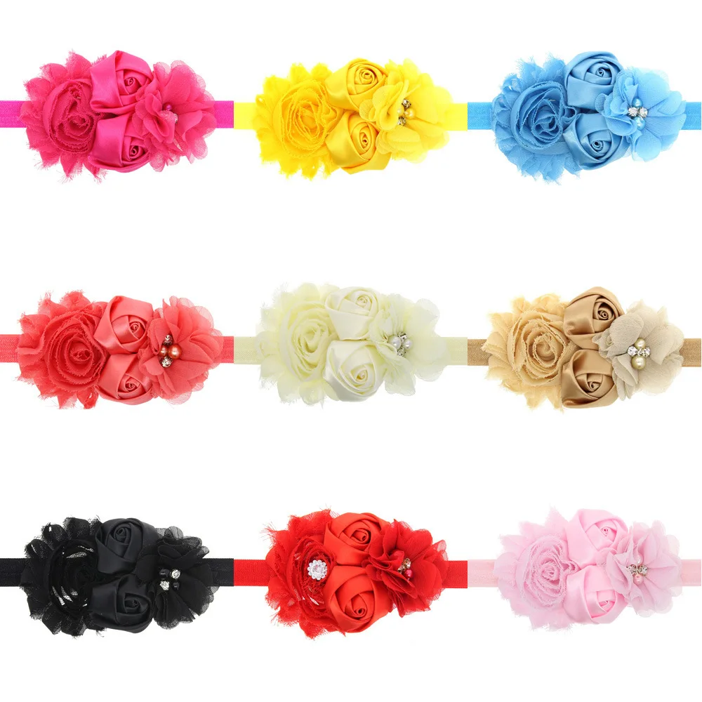 Повязка на голову для маленьких девочек, цветочный тканевый галстук, банты, головной убор для новорожденных, тиара, головной убор, подарок для малышей, бандаж, лента с кристаллами