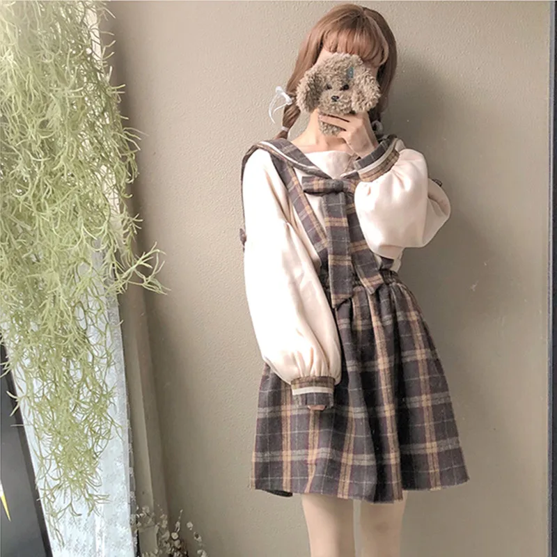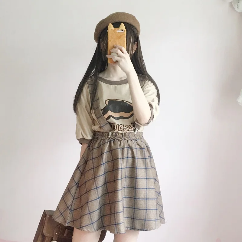 Юбка женская трапециевидная в клетку, винтажная Милая Повседневная мини-юбка в японском стиле Харадзюку, с завышенной талией, на застежках, в стиле Харадзюку