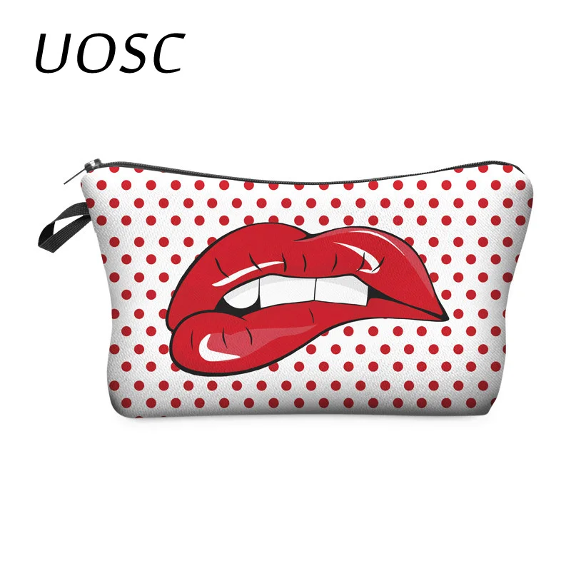 Косметичка UOSC Женская, с красными губами и 3D-принтом, разноцветная